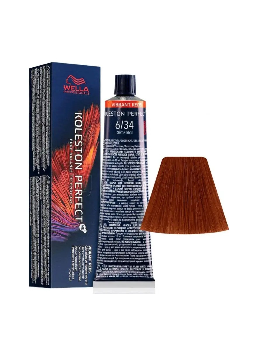 Koleston Perfect ME+ Крем-краска cтойкая 6/34 Медовый пунш 60 мл. Действие красителя основано на технологии Pure Balance. Она нейтрализует частицы металлов, которые присутствуют в волосах, тем самым защищает волосы от свободных радикалов. Из-за этого некоторые оттенки во время окислительного процесса могут выглядеть иначе. Не беспокойтесь – результат окрашивания будет полностью соответствовать вашим ожиданиям.