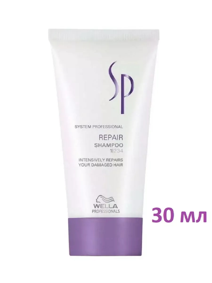 SP Repair Shampoo 250 ml. Wella's repair shampoo improves hair structure and adds strength and shine. Thanks to Wella's unique RNP formula, it penetrates deep into the hair shaft. After using Wella's shampoo, hair becomes stronger and more flexible, shiny, and easy to comb. Contains glycine and wheat proteins. Apply a small amount of Wella shampoo to damp hair, massage into the scalp, and rinse thoroughly with warm water. Repeat if necessary.