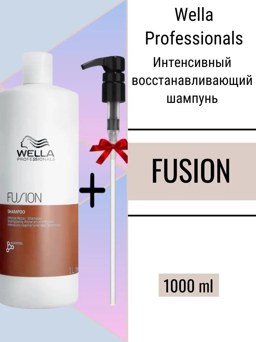 FUSION Intense Repair Shampoo, 1000 ml. This ultra-gentle shampoo from Wella Professionals provides intensive care and restoration for damaged hair. Discover the new Fusion hair care line. Up to 95% more strength against breakage, restoring and protecting hair from damage. The formula is based on the Silksteel Fusion program, inspired by spider silk, one of the strongest fibers in nature.