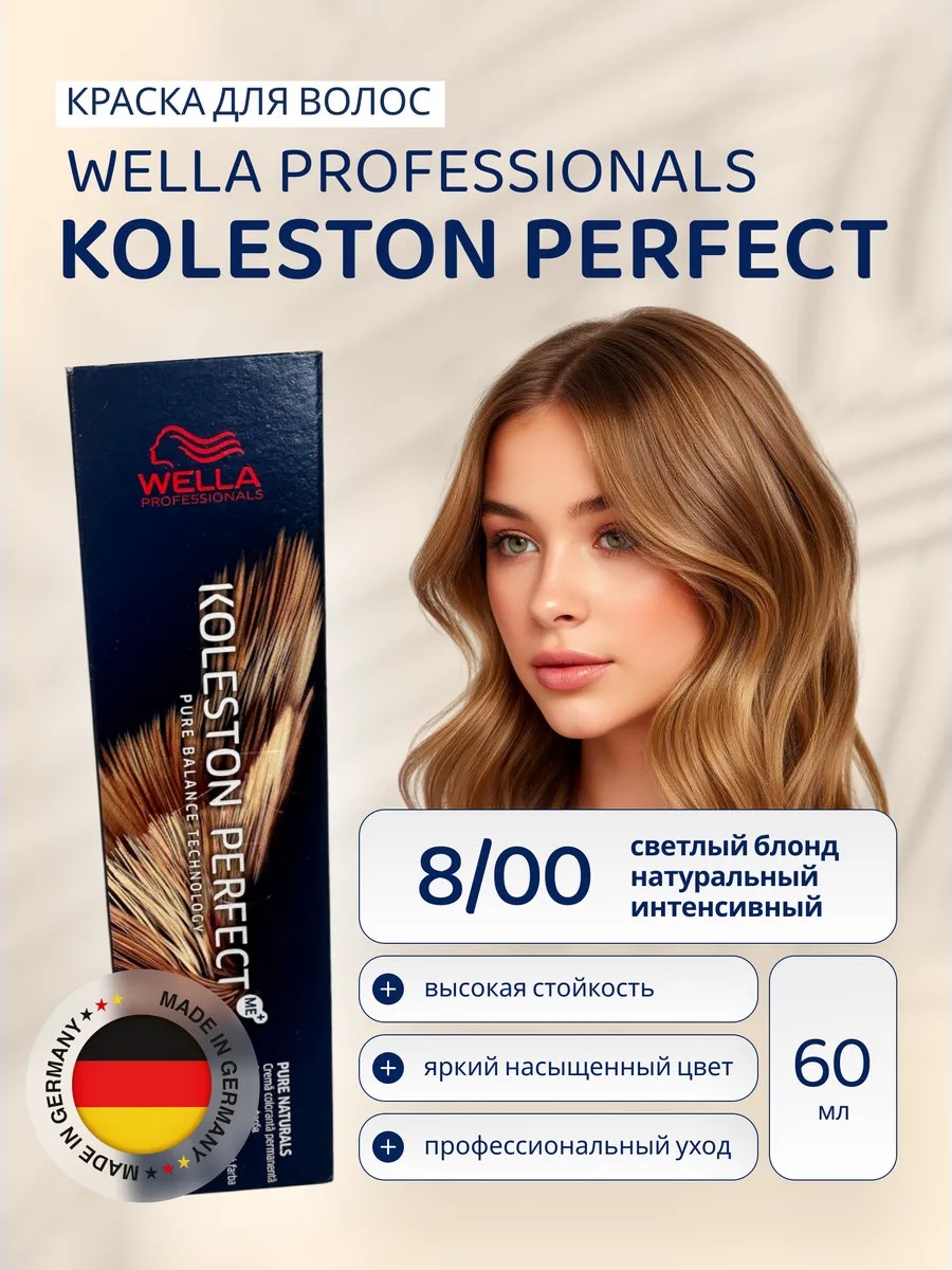 Наша крем - краска для волос - это отличный выбор для тех, кто хочет добиться красивого и стойкого закрашивания как для отросших корней, так и для окрашивания всей длины. Wella Professional Koleston Perfect ME+. Тон 8.00 Вэлла краска осветлитель легко наносится и не течет. Она идеально подходит для тонирования и окрашивания, благодаря специальным пигментам, которые обеспечивают яркость и глубину цвета. Велла Колестон Перфект проникает глубоко внутрь волоса. Она легко наносится и быстро действует, что делает процесс окрашивания быстрым и простым. Это средство для волос профессионального качества обеспечивает стойкое окрашивание, что означает, что вы сможете наслаждаться ярким цветом волос очень долго. Она идеально подходит для тех, кто хочет изменить свой образ и выглядеть свежо и модно, следит за красотой. Самое главное, она позволяет сохранить здоровье ваших волос, в то время как она меняет их цвет. Она обогащена натуральными компонентами, которые ухаживают за волосами, оставляя их мягкими, блестящими и здоровыми. Не забудьте использовать тест-прядь перед применением краски для определения правильного оттенка. Наша краска профессионал - это отличный профессиональный продукт для домашнего использования, который способен придать вашим волосам яркий и стойкий цвет. Широкий выбор оттенков, включая цвет блонд, холодный белый, русый, пепельный, красный и многое другое. Требуемый результат достигается благодаря высококачественным ингредиентам Wella.