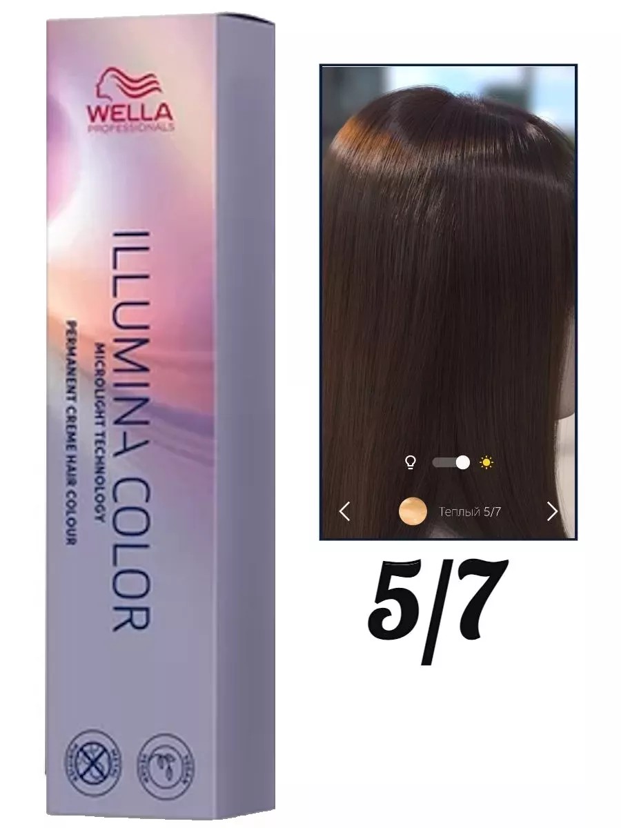 Wella Крем-краска Illumina Color 5/7 Светло - коричневый коричневый, заставляет цвет играть всеми гранями спектра, раскрывая невиданные ранее возможности. Теперь вы можете играть со светом и создавать новые аспекты цвета, которые затронут эмоции и чувства каждого клиента. Крем-краска Wella Professionals Illumina Color для волос - это чудо косметики родилось в результате многолетнего исследования специалистами Wella. Краска Illumina Color относится к группе аммиачного окрашивания волос. Но благодаря революционной формуле, ей могут пользоваться даже обладательницы тонких и ломких волос.