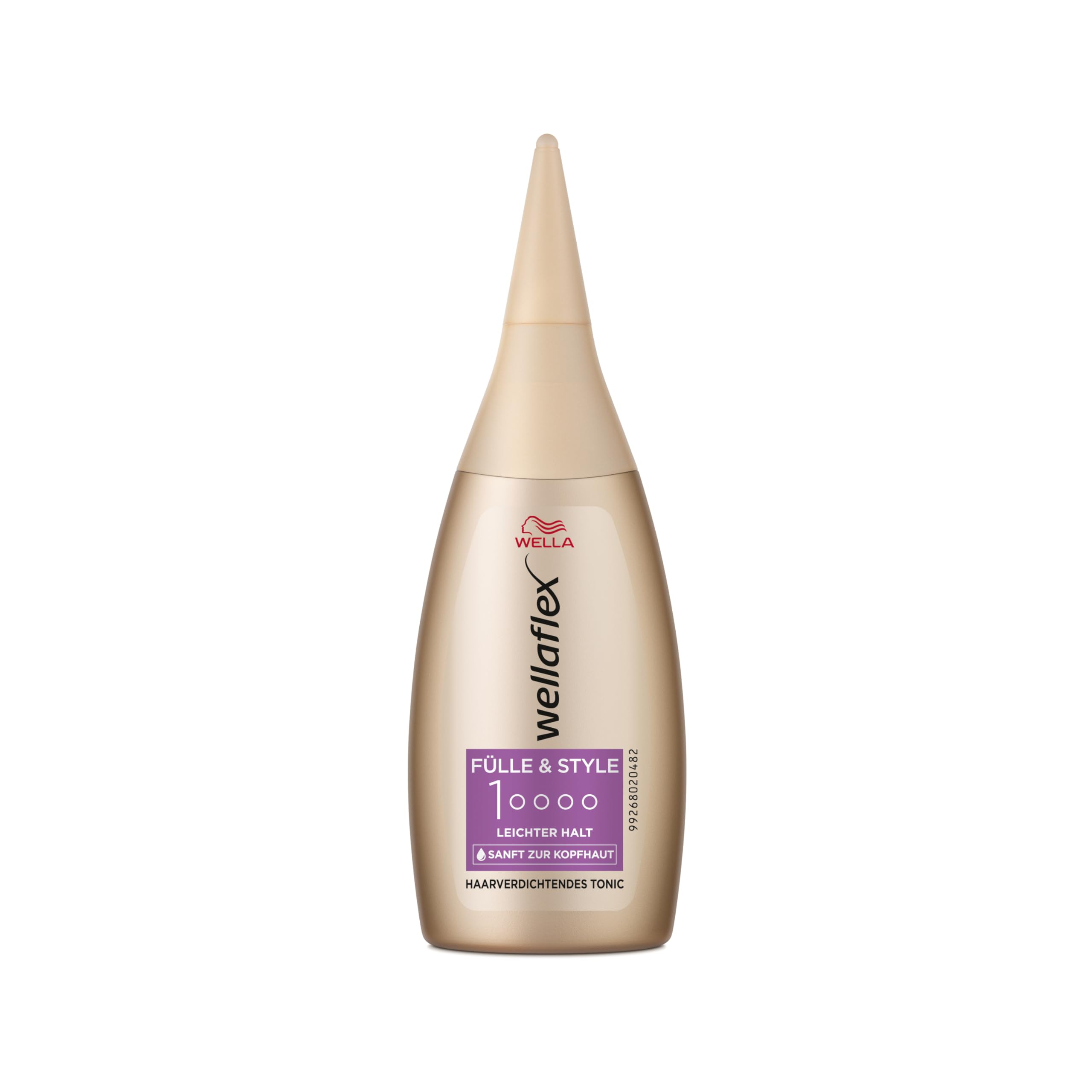 Full looking, voluminous hair without sticky residuesThat must be on the Wellaflex fullness style tonic!This light, scalp -friendly, volume -giving tonic is dermatologically tested and condenses very fine hair without complaining.The vegan formula lifts thin hair on the hairline and helps to a voluminous, natural look that lasts for hours and at the same time offers UV protection against solar radiation.In addition, the packaging is 39 of recycled material.Shake well before use.Apply the tonic evenly to your scalp on the hairline and work the product with your fingertips.Comb and blow -dry gently or let it dry.For more styling options and a more voluminous look, try out the entire Wellaflex full style series.Discover our ultra strong foam -strength, which sows for long -lasting hold and helps you to make your hair look fuller and denser.Complete your hairstyle with our ultra strong hairspray, the flat hair gives even more volume and a ultra strong hold, which lasts up to 48 hours.Experience every moment with a perfect style full of self -confidence, thanks to the wide selection of wella styling products for women. Formulation without ingredients of animal origin Warnings Don't spray in the eyes.Must not get into the hands of children.discover the entire Wellaflex abundance volume series for full, voluminous looks that last long.Shake well before use.Apply the tonic evenly to your scalp on the hairline and work the product with your fingertips.Comb and blow -dry gently or let it dry.Light, hair -compacting tonic for full -looking and denser hair.Calcular, vegan, dermatologically tested formula, which ensures volume and abundance.Wellaflex Funding Style Tonic, a hair -compacting product for the scalp without sticky residues.Voller aussehendes, voluminöses Haar ohne klebrige RückständeDas muss am Wellaflex Fülle Style Tonic liegen! Dieses leichte, kopfhautschonende, volumengebende Tonic ist dermatologisch getestet und verdichtet sehr feines Haar, ohne es zu beschweren. Die vegane Formel liftet dünnes Haar am Haaransatz und verhilft zu einem voluminösen, natürlichen Look, der stundenlang anhält und gleichzeitig UV-Schutz vor Sonneneinstrahlungen bietet. Zudem besteht die Verpackung zu 39 aus recyceltem Material. Vor Gebrauch gut schütteln. Trage das Tonic gleichmäßig auf deine Kopfhaut am Haaransatz auf und arbeite das Produkt mit den Fingerspitzen ein. Sanft durchkämmen und föhnen oder natürlich trocknen lassen. Für mehr Stylingmöglichkeiten und einen voluminöseren Look, probiere die gesamte Wellaflex Fülle Style Reihe aus. Entdecke unseren ultra starken Schaumfestiger, der für lang anhaltenden Halt sogt und Dir dabei hilft, Dein Haar voller und dichter aussehen zu lassen. Vervollständige Deine Frisur mit unserem ultra starken Haarspray, das plattem Haar noch mehr Volumen und einen ultra starken Halt verleiht, der bis zu 48 Stunden hält. Erlebe jeden Moment mit einem perfekten Style voller Selbstbewusstsein, dank der breiten Auswahl an Wella Stylingprodukten für Frauen. Formulierung ohne Inhaltsstoffe tierischen Ursprungs WARNHINWEISE Nicht in die Augen sprühen. Darf nicht in die Hände von Kindern gelangen.Entdecke die gesamte Wellaflex Fülle Volumen Reihe für volle, voluminöse Looks, die lange halten. Vor Gebrauch gut schütteln. Trage das Tonic gleichmäßig auf deine Kopfhaut am Haaransatz auf und arbeite das Produkt mit den Fingerspitzen ein. Sanft durchkämmen und föhnen oder natürlich trocknen lassen. Leichtes, haarverdichtendes Tonic für voller aussehendes und dichter wirkendes Haar. Kopfhautschonende, vegane, dermatologisch getestete Formel, die für Volumen und Fülle sorgt. Wellaflex Fülle Style Tonic, ein haarverdichtendes Produkt für die Kopfhaut ohne klebrige Rückstände zu hinterlassen.Wellaflex Fülle Style Haarverdichtendes Tonic Sofortiges Volumen und Ansatzlift sich dichter anfühlendes Haar Sanft zur Kopfhaut, dermatologisch getestet Vegane Formel Haltegrad 1 150ml