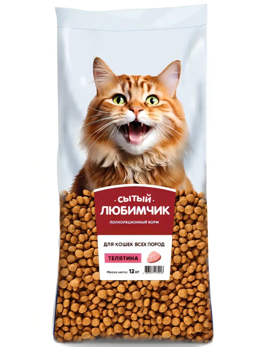 | Полное наименование товара | Сытый любимчик сухой корм для кошек Телятина 12 кг |