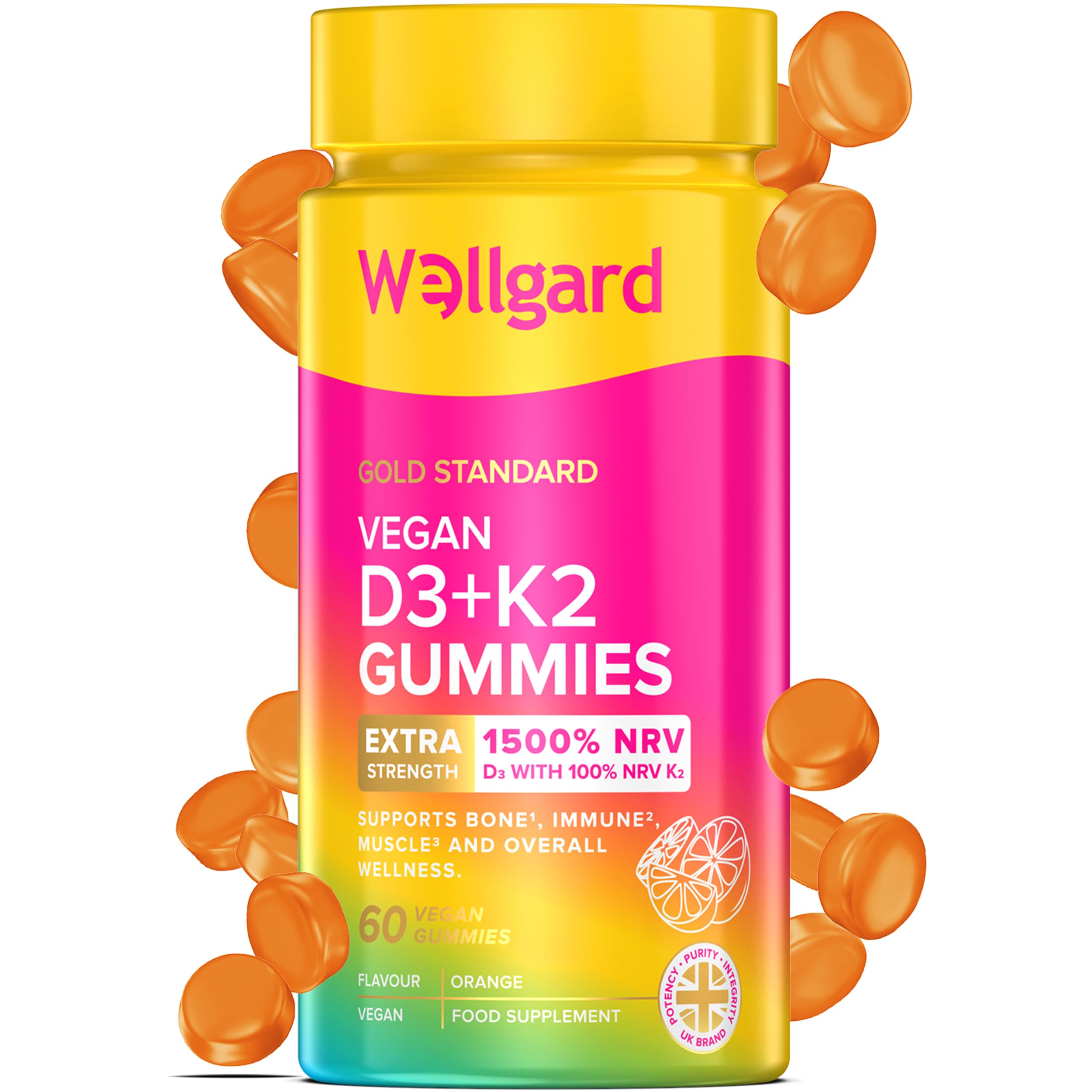 Vitamin D3 and Vitamin K2, to support muscle function, immunity, bone health, and more. INGREDIENTS Glucose, Sucrose, Gelling agent: Pectin; Acid: Citric acid; Antioxidants: Ascorbic acid, D-alpha tocopherol; Acidity regulator: Sodium citrate; Flavouring: Natural Orange flavour; Cholecalciferol, Glazing agent: Carnauba wax; Purple Carrot juice concentrate, Coconut oil, Canola oil, Menaquinone, Colour: Curcumin. DIRECTIONS Chew two gummies daily. Do not swallow the gummy whole. SAFETY WARNING Food supplements should not be used as a substitute for a varied diet and healthy lifestyle. If pregnant, breast feeding or on medication, consult your doctor or a medical practitioner before taking this product. Do not exceed the recommended intake. Do not use if safety seal is damaged or broken. Store in a cool dry place below 25°C, out of direct sunlight, and out of sight and reach of children. See more? CLEAN, VEGAN & DELICIOUSLY EASY TO TAKE - Naturally flavoured, chewable gummies made with pectin — not gelatine. Free from artificial colours and preservatives, making daily nutrition enjoyable and kind to your body. ? SMART CALCIUM UTILISATION — D3 ABSORBS, K2 DIRECTS - While D3 helps absorb calcium, K2 ensures it’s guided to your bones and teeth — not your arteries. This synergy supports long-term health and wellbeing. ? SUPPORTS IMMUNE SYSTEM & MUSCLE HEALTH -