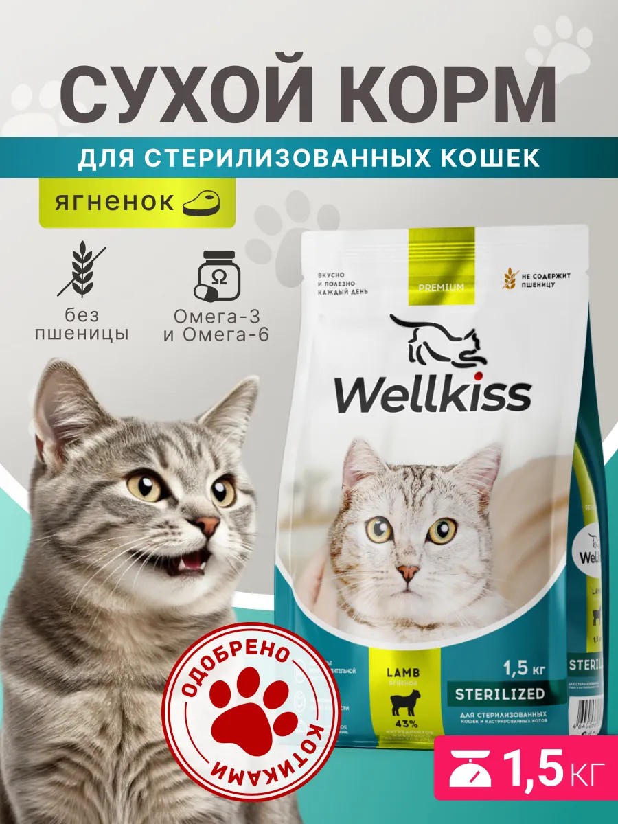 | Полное наименование товара | Wellkiss Sterilized Сухой корм для стерилизованных кошек, с ягненком, 1.5 кг |
