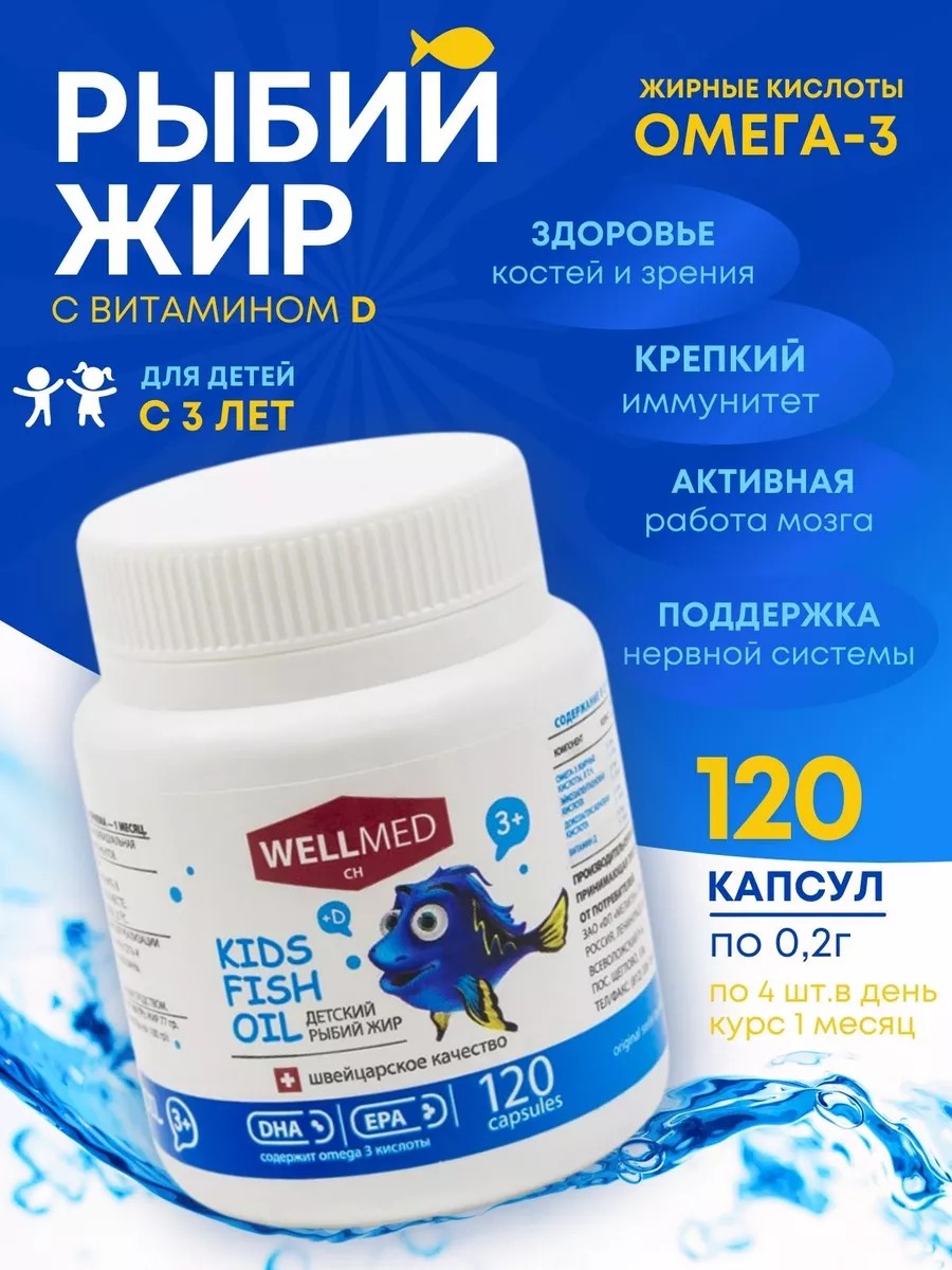 Детский рыбий жир WELLMED в капсулах — это источник омега-3, специально разработанный для поддержки здоровья детей. Омега-3 жирные кислоты играют ключевую роль в развитии и функционировании детского организма. Они способствуют укреплению иммунитета, поддерживают здоровье сердечно-сосудистой и нервной систем, а также улучшают стрессоустойчивость.