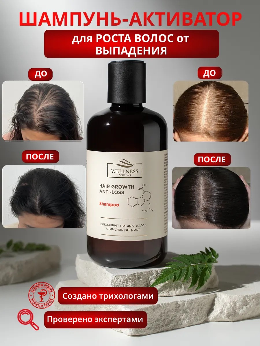 Шампунь от выпадения волос для роста волос "Wellness your hair" - природная сила и инновации для густых и сияющих волос. Мечтаете о длинных, крепких и здоровых волосах? Наш шампунь для роста волос создан на основе уникальной формулы, объединяющей научные достижения и силу натуральных экстрактов. Он не просто очищает, а комплексно воздействует на волосяные фолликулы, пробуждая их к активному росту, укрепляя корни и восстанавливая структуру каждого волоса.