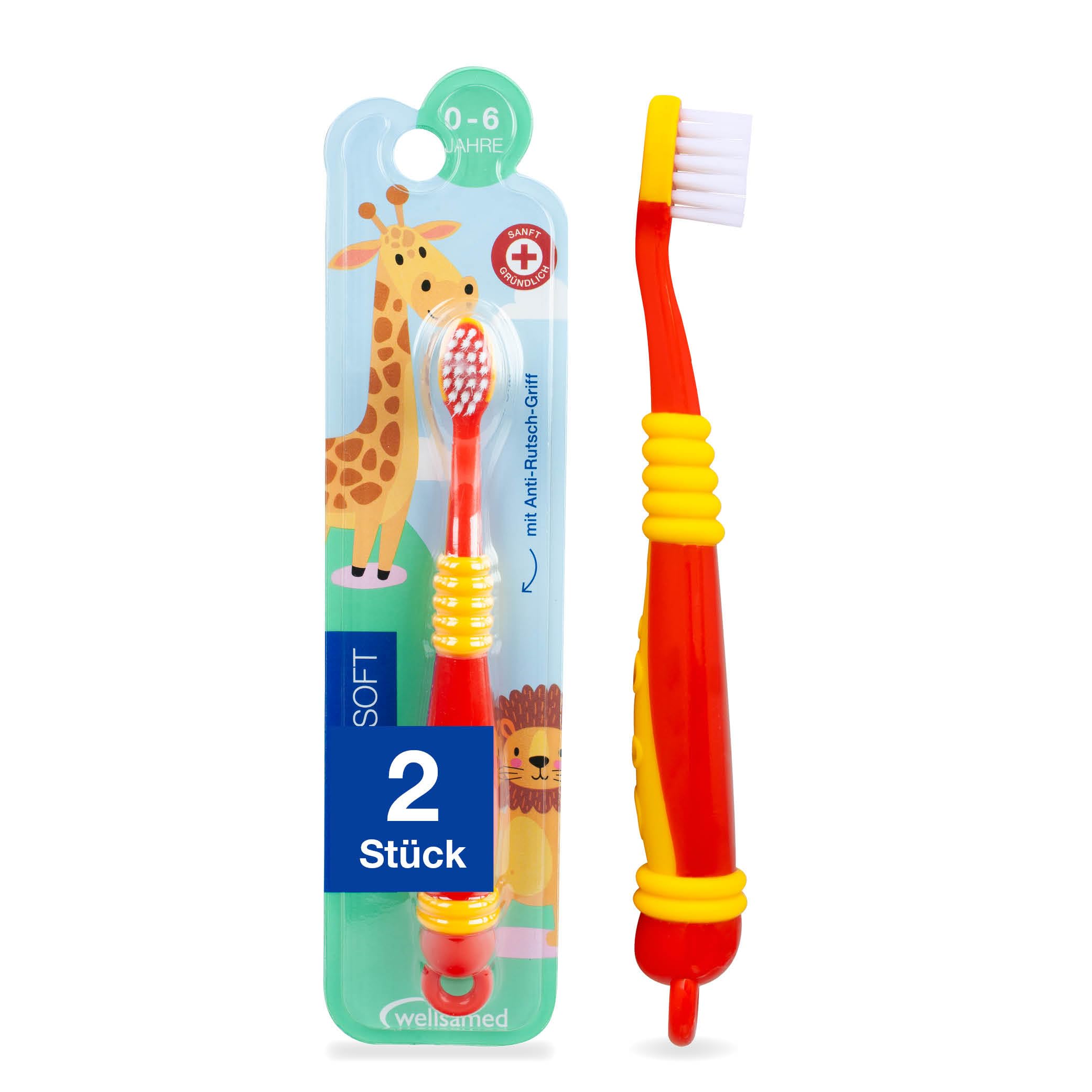 Scope of delivery: 2 pieces of wellsakids junior soft children's toothbrush, red. Long -lived and quality: When manufacturing the toothbrush, high -quality materials and precise processing are used, which remains steadfast and reliable, no matter how wildBrushing your teeth is.Easy handling: Due to the extra small anti-slip handle, the toothbrush is ideal in the small hands and prevents slipping and thus ensures a safe, pleasant cleaning.Learn to brushing your teeth: Our Wellsakids Junior Soft Children's toothbrush offers your children the best start to brushing your teeth.With its extra small design, this toothbrush is ideal for the small hands and easily reaches every place in the mouth with the small brush head.Gently cleaning: The extra soft and slim bristles of the Wellsakids Junior Soft clean very gently to deep into the interdental spaces and gently massage the sensitive gums.