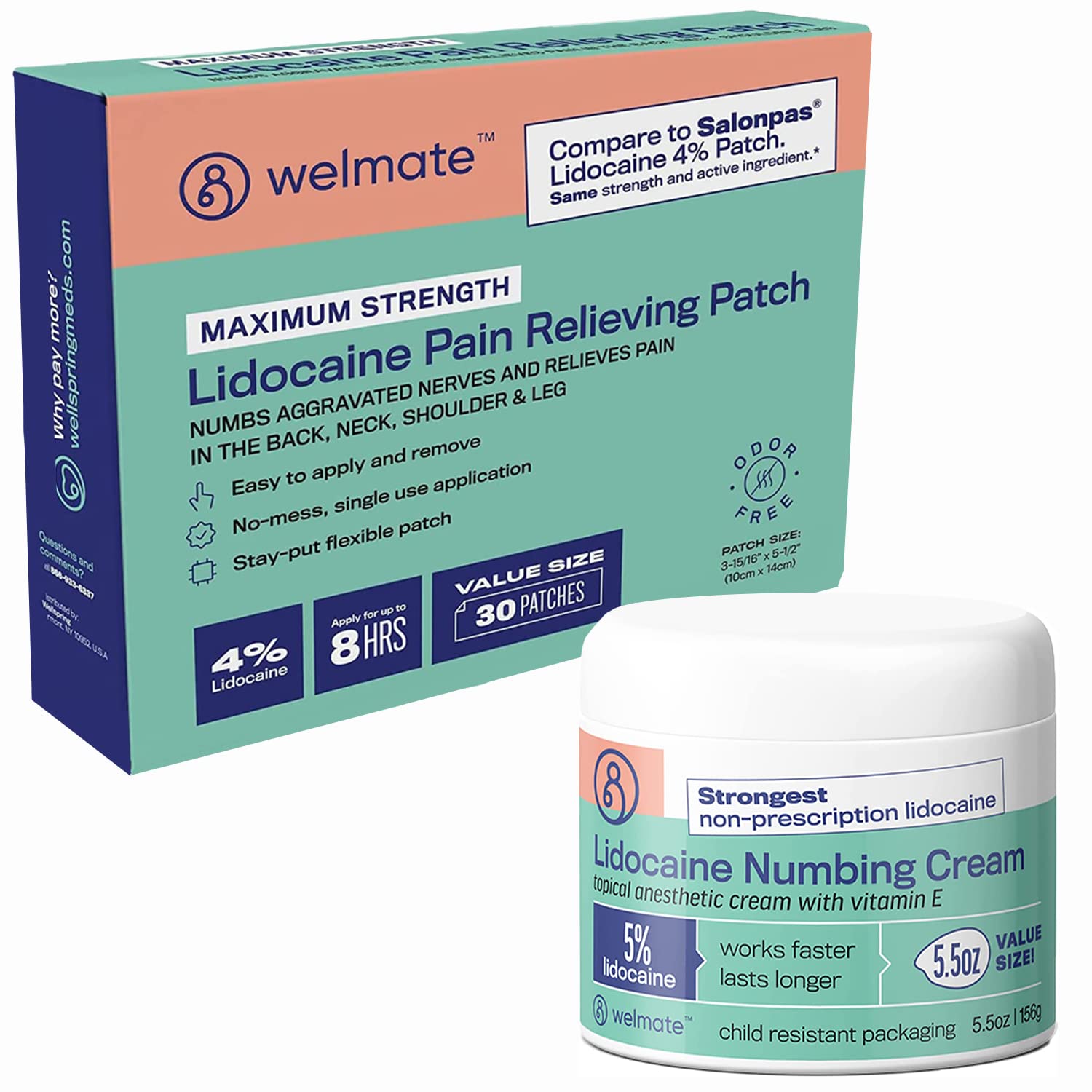 WELMATE Bundle: 4% Lidocaine Patch 30ct & 5% Lidocaine Cream 5.5oz