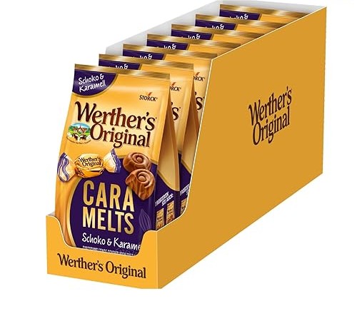 Werther's original fine bright Werther's original fine bright chocolate specialty: the delicate composition From the finest whole milk chocolate mti a touch of Werther's original caramel creates a Very special taste experience.The creations of Werther's original have been Generations for enjoyment and the sweet taste of childhood.Werther's original fine Bright combines delicious caramel and finest whole milk chocolate and so invites you to enjoy a.A little bit of bliss. Ingredients ingredients Ingredients: noble cream chocolate (sugar, whole milk powder, cocoa butter, cocoa mass, butter pure fat, buttermilk powder, milk sugar, emulsifier lecithine (soy), aroma), vegetable fats (palm, shea), sugar, lean milk powder, brown sugar, caramel sugar syrup (soja), Salt, aroma. Can also contain shares of hazelnut, almond, peanut and other nuts. Instructions -- Warnings Can also contain shares of hazelnut, almond, peanut and other nuts Address manufacturer importer Waldstr.27, D-13403 Berlin Morescope of delivery: 7 x 153g Werther's original fine light noble cream chocolate with caramel swirl individually packaged ideal for on the go, for self-pampering, sharing and giving away.Werther's original noble cream chocolate with a hint of caramel is ideal for enjoying and snacking.The fine Werther's original chocolate specialties with a hint of caramel offer a caramely-chocolate taste experience for a feeling of home and security at all times.A chocolate caramel dream: The Werther's original specialty made of delicate melting whole milk chocolate with a hint of the finest Werther's original caramel seduces the palate.Caramel meets noble cream chocolate: the finest whole milk chocolate with a touch of Werther's original caramel ensures special, delicate melting moments of pleasure.Werther's Original Feine Helle Werther's Original Feine Helle Schokoladenspezialität: Die zartschmelzende Komposition aus feinster Vollmilchschokolade mti einem Hauch Werther's Original Karamell schafft ein ganz besonderes Geschmackserlebnis. Die Kreationen von Werther's Original stehen seit Generationen für Genuss und den süßen Geschmack der Kindheit. Werther's Original Feine Helle vereint köstliches Karamell und feinste Vollmilchschokolade und lädt so zum Genießen ein. Ein kleines Stück Glückseligkeit. INHALTSSTOFFE ZUTATEN Zutaten: Edel-Sahneschokolade (Zucker, VOLLMILCHPULVER, Kakaobutter, Kakaomasse, BUTTERREINFETT, BUTTERMILCHPULVER, MILCHZUCKER, Emulgator Lecithine (SOJA), Aroma), pflanzliche Fette (Palm, Shea), Zucker, MAGERMILCHPULVER, Brauner Zucker, Karamellzuckersirup, Emulgator Lecithine (SOJA), Salz, Aroma. KANN AUCH ANTEILE VON HASELNUSS, MANDEL, ERDNUSS UND ANDEREN NÜSSEN ENTHALTEN. GEBRAUCHSANWEISUNG -- WARNHINWEISE KANN AUCH ANTEILE VON HASELNUSS, MANDEL, ERDNUSS UND ANDEREN NÜSSEN ENTHALTEN ANSCHRIFT HERSTELLER IMPORTEUR Waldstr. 27, D-13403 Berlin MehrLieferumfang: 7 x 153g Werther's Original Feine Helle Edel-Sahneschokolade mit Karamell-Swirl Einzeln verpackt Ideal für unterwegs, zum Selbstverwöhnen, Teilen und Verschenken. Werther's Original Edel-Sahneschokolade mit einem Hauch Karamell eignet sich hervorragend zum Genießen und Naschen. Die feinen Werther's Original Schokoladen-Spezialitäten mit einem Hauch Karamell bieten jederzeit ein karamellig-schokoladiges Geschmackserlebnis für ein Gefühl von Zuhause und Geborgenheit. Ein Schokoladen-Karamell-Traum: Die Werther's Original Spezialität aus zartschmelzender Vollmilchschokolade mit einem Hauch feinstem Werther's Original Karamell verführt den Gaumen. Karamell trifft auf Edel-Sahneschokolade: Feinste Vollmilchschokolade mit einem Hauch Werther's Original Karamell sorgt für besondere, zartschmelzende Genussmomente.Werther's Original Feine Helle – 7 x 153g – Edel-Sahneschokolade mit einem Swirl von Karamell-Konfekt Feine Helle 153 g (7er Pack)