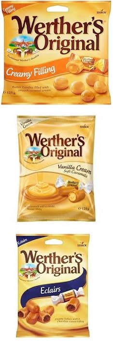 Werthers Original Sharing Bundle - Creamy Filling (125g) Vanilla Cream (125g) and Eclairs (125g)