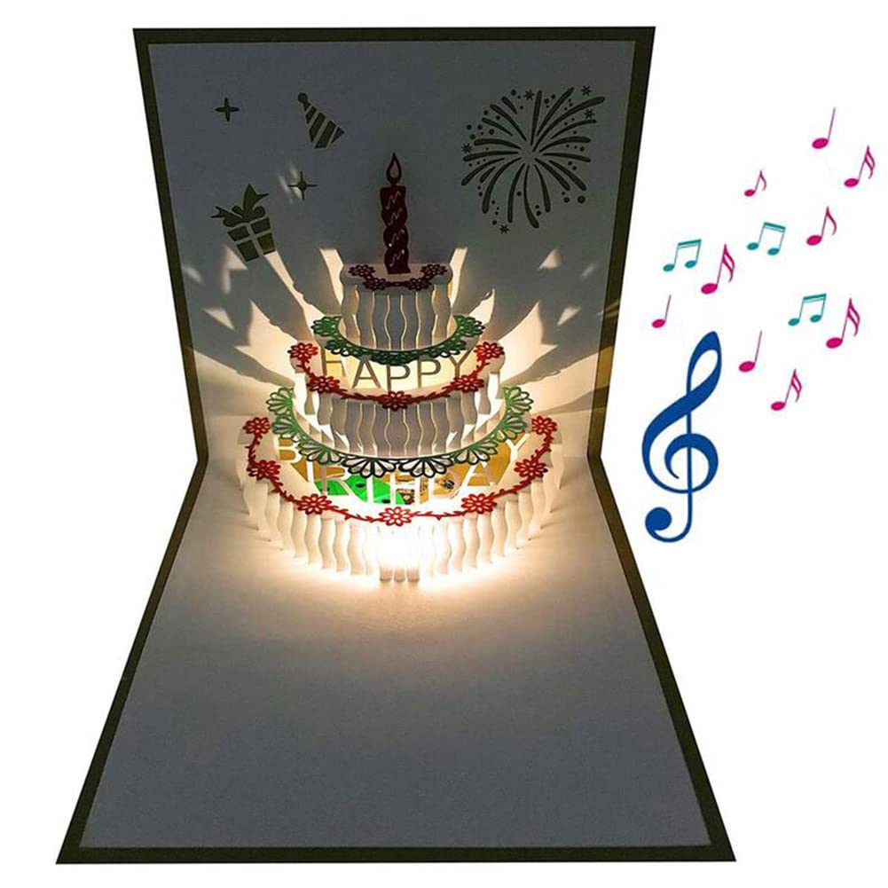 WESAPPINC 3D Pop Up Birthday Cards Warming LED Light Birthday Cake Music Happy Birthday Card Postcards Pop Up Greeting Cards Laser Cut Happy Birthday Cards Best for Mom Wife Sister Boy Girl Friends (1Pack LED birthday card)