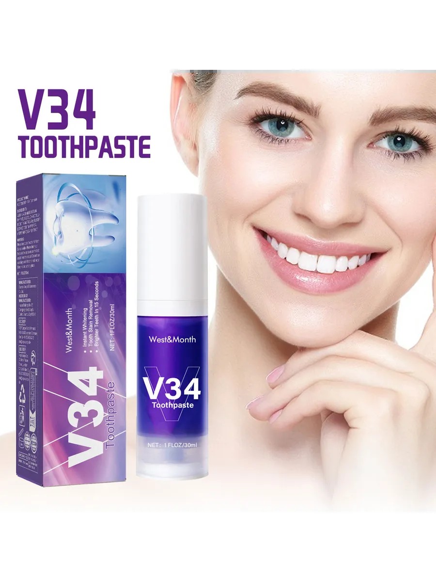 - Our purple whitening toothpaste has a long-lasting fresh aroma that freshens breath. V34 Whitening Toothpaste contains plant extracts that help strengthen enamel, whiten teeth, and fight bad breath. Comprehensive protection for gums and teeth.