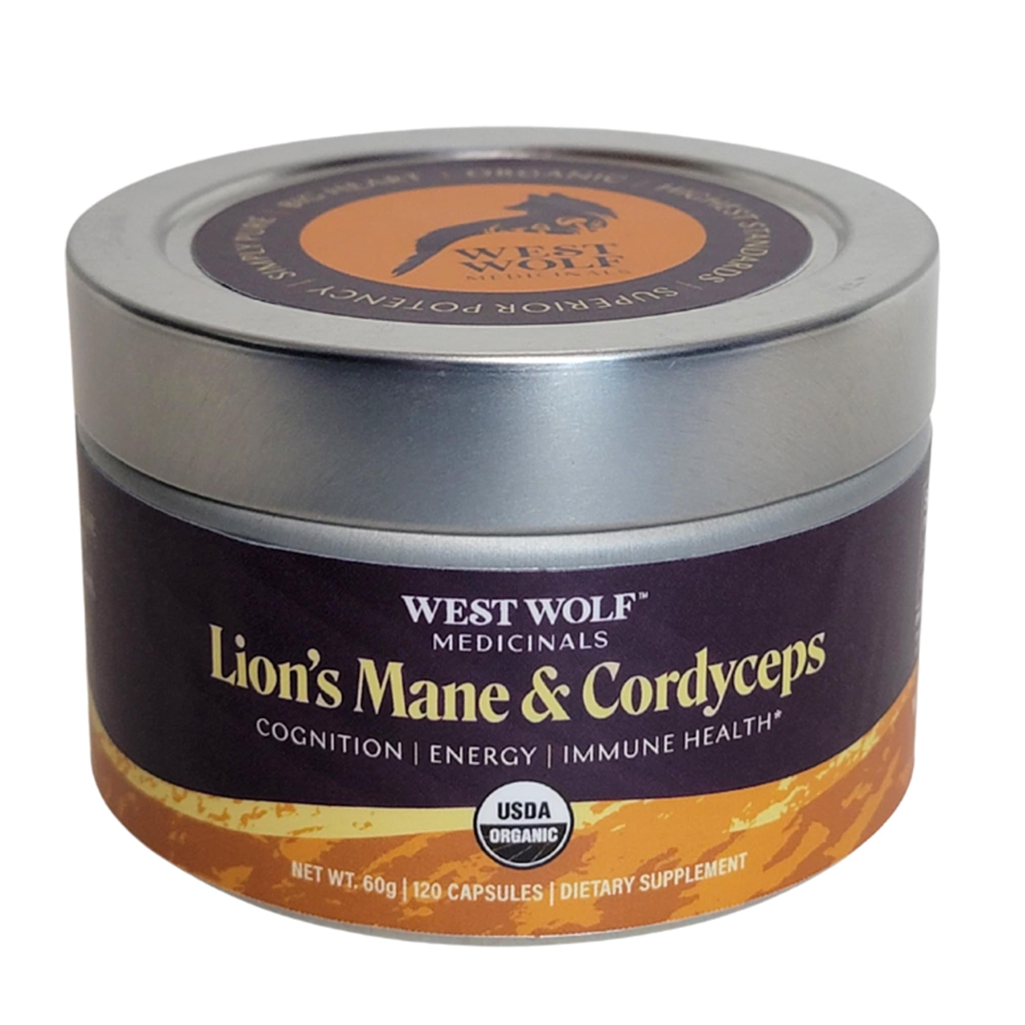 West Wolf Medicinals Lion's Mane & Cordyceps Mushroom Extract Powder Capsules| High Potency/Over 30% Beta Glucans| No Fillers| USDA Organic| 120Capules/ 4Months Supply | Eco-Friendly Packaging
