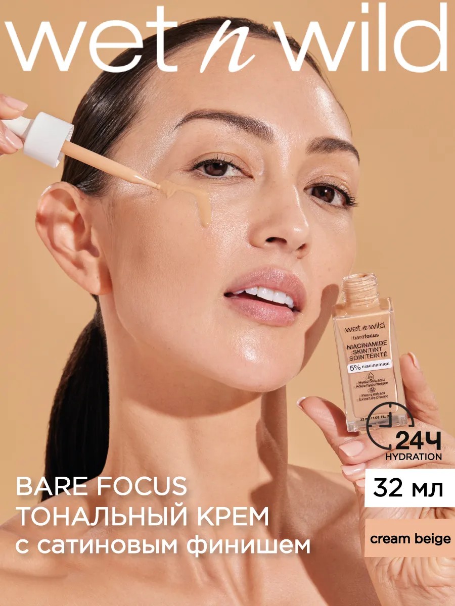 Представляем тинт для лица тональный Bare Focus Skin Tint от официального дистрибьютора декоративной косметики wet n wild в РФ! Эта невесомая суперпитательная тональная основа с влажным финишем обеспечивает стойкий макияж в течение всего дня! Продукт содержит концентрированный 5% ниацинамид (Витамин В3), который в сочетании с гиалуроновой кислотой придает коже упругость, а экстракт пиона успокаивает и разглаживает морщинки.