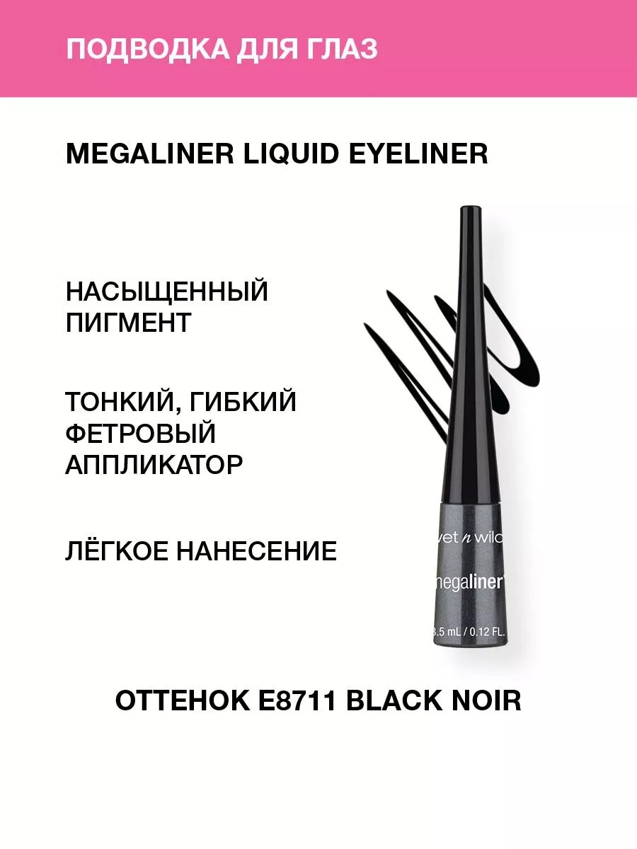 Подводка для глаз Wet n Wild Megaliner Liquid Eyeliner добавит взгляду шарм, глубину и обаяние. Wet n Wild создает продукты превосходного качества, ничем не уступающие более дорогим аналогам. Послушный гибкий аппликатор подводки для глаз Megaliner Liquid Eyeliner идеален для чётких линий. Насыщенный пигмент и микс полимеров создают роскошную жидкую подводку, которая быстро высыхает и долго держится, аккуратно подчеркивая или ярко акцентируя взгляд. Предлагаем ценителям красоты новейшие разработки в продуктах макияжа высочайшего качества по доступной цене для смелых экспериментов с цветом и трендами. Используйте карандаш для прорисовывания межресничного пространства, заполняя цветом промежутки между волосками для усиления эффекта пышных густых ресниц. Vegan – продукт не содержит компонентов животного происхождения и не тестировался на животных.