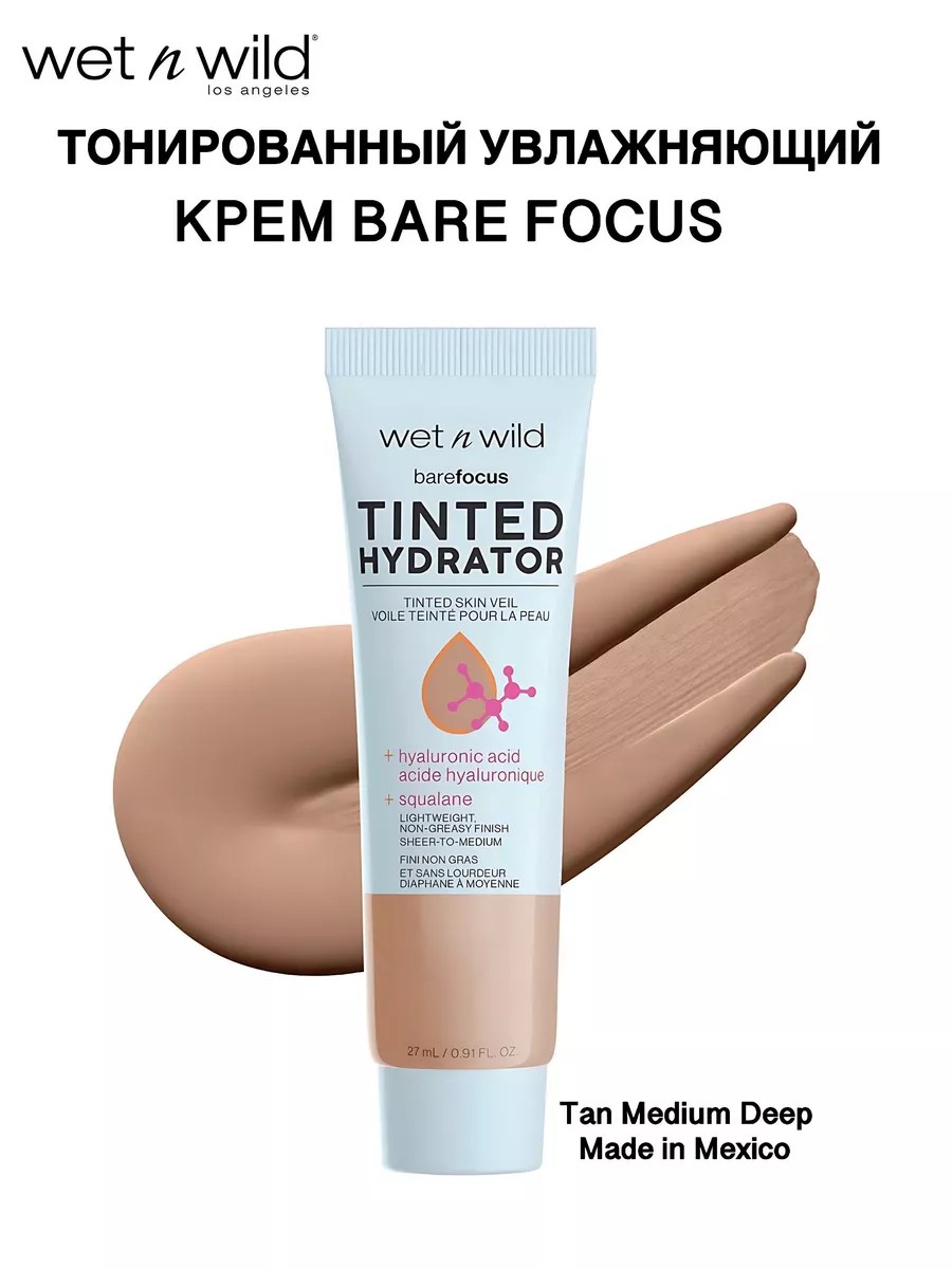 Wet n Wild Bare Focus Tinted Hydrator Tinted Skin Veil 1114091— это увлажняющий тонирующий крем с гиалуроновой кислотой и веганским скваланом, который подарит вашей коже увлажнение и совершенный вид!
