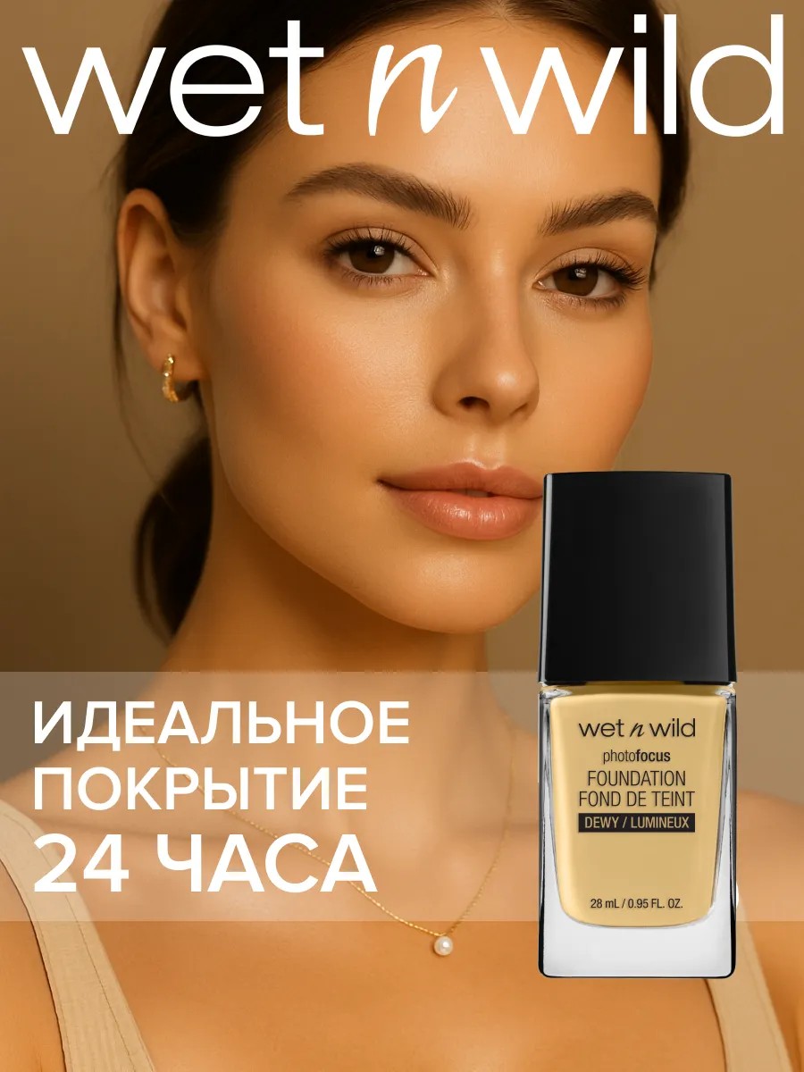 Photo Focus Dewy Foundation, a long-lasting foundation with a natural finish, from the official distributor of wet n wild decorative cosmetics in Russia. This weightless, super-nourishing, even-out foundation ensures long-lasting makeup all day long! This foundation has undergone rigorous photo testing in seven different lighting modes, with and without flash.