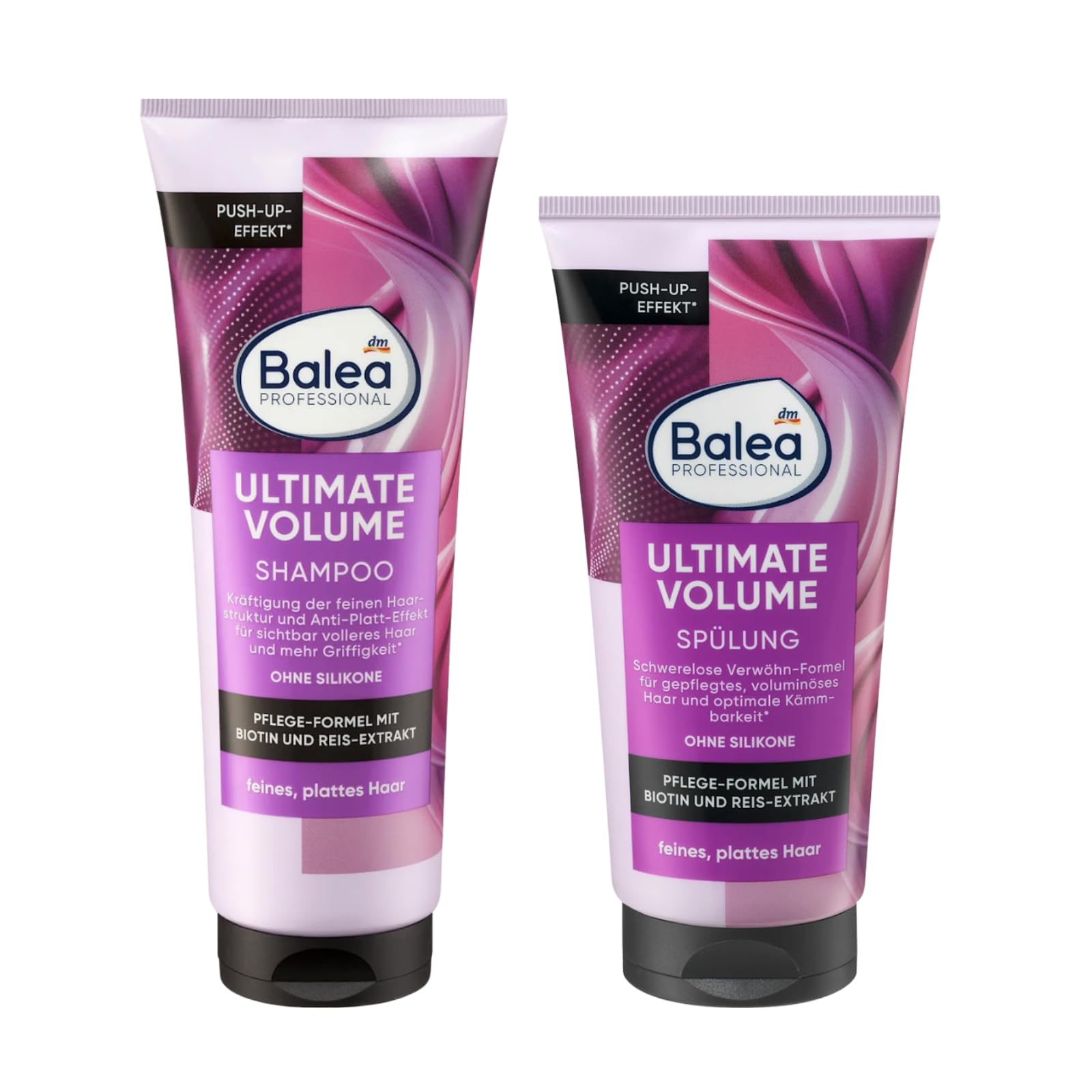Balea Professional Conditioner Ultimate Volume, 200 ml Caring formula with biotin and rice extract for fine, flat hair. Push-up effect. Without silicone. Vegan The Ultimate Volume rinse from Balea Professional can make fine, flat hair fuller and more grippy thanks to the push-up effect . The weightless formula with biotin and rice extract can also provide well-groomed and more voluminous hair and improve combability. For noticeably grippy and worry-free hair. With combination use Ultimate Volume shampoo and conditioner. Balea Professional Shampoo Ultimate Volume, 250 ml Volume shampoo. For fine, flat hair. With anti-flat effect. Caring formula with biotin and rice extract. Strengthens the hair structure and provides more grip. Balea Professional's Ultimate Volume shampoo transforms fine, flat hair into a voluminous mane. With its special formula, which contains biotin and rice extract, it strengthens the fine hair structure and provides a remarkable anti-flattening effect. This gentle cleansing not only removes impurities, but also provides targeted care for the hair without weighing it down. The result is visibly fuller and better-resistant hair that shines healthily. Recipe without microplastic and water-soluble purely synthetic polymers. Scalp brush: suitable for all hair types, promotes blood circulation and hair growth, removes dandruff and ensures a healthy scalp. Ergonomic design, sustainable from recyclable materials. INSTRUCTIONS FOR USE 1st Wet hair. Apply 2nd Shampoo to the hair and scalp and massage in. 3rd Shampoo thoroughly rinse. 4th Apply conditioner to the hair, but not to the scalp. 5. Rinse the conditioner thoroughly after a short exposure time. SAFETY WARNING Gently massage into wet hair, leave on briefly and rinse thoroughly. Note: Avoid contact with eyes. In case of contact with eyes, rinse with plenty of water. If the product comes into contact with other materials (textiles, sanitary installations), clean thoroughly. Not suitable for natural blonde hair See moreVegan and eco-friendly – free from microplastics and water-soluble synthetic polymers – good for hair and the environment. Strengthening the hair structure: the shampoo strengthens fine hair from the roots to the tips and gives a healthy shine. Light, silicone-free formula: does not weigh the hair down and improves combability for a carefree hair feeling. Push-up and anti-flat effect: Used in combination, shampoo and conditioner provide noticeably more root volume and grip. Special care for fine, flat hair: the formula with biotin and rice extract gives the hair visibly more volume and volume.Shampoo Ultimate Volume, 250 ml Conditioner Ultimate Volume, 200 ml Masseborstel voor hoofdhuid Balea Professional Conditioner Ultimate Volume, 200 ml Verzorgende formule met biotine en rijst-extract voor fijn, plat haar. Push-up-effect. Zonder siliconen. Veganistisch De spoeling Ultimate Volume van Balea Professional kan fijn, plat haar dankzij het push-up-effect voller en gripvoller maken. De gewichtloze formule met biotine en rijstextract kan bovendien voor verzorgd en volumineuzer haar zorgen en de kambaarheid verbeteren. Voor merkbaar gripvast en zorgeloos haar. Bij combinatietoepassing Ultimate Volume shampoo en conditioner. Balea Professional Shampoo Ultimate Volume, 250 ml Volume shampoo. Voor fijn, plat haar. Met anti-plat-effect. Verzorgende formule met biotine en rijst-extract. Versterkt de haarstructuur en geeft meer grip. De shampoo Ultimate Volume van Balea Professional verandert fijn, plat haar in volumineuze manen. Met zijn speciale formule, die biotine en rijst extract bevat, versterkt het de fijne haarstructuur en zorgt het voor een opmerkelijk anti-plat-effect. Deze zachte reiniging verwijdert niet alleen onzuiverheden, maar verzorgt het haar ook doelgericht zonder het te verzwaren. Het resultaat is zichtbaar voller en beter stroef haar, dat gezond glanst. Recept zonder microplastic en in water oplosbare puur synthetische polymeren. Hoofdhuidborstel: geschikt voor alle haartypes, bevordert de doorbloeding en de haargroei, verwijdert roos en zorgt voor een gezonde hoofdhuid. Ergonomisch design, duurzaam van recyclebare materialen. GEBRUIKSAANWIJZING 1ste Haar nat maken. 2de Shampoo op het haar en de hoofdhuid aanbrengen en inmasseren. 3de Shampoo grondig uitspoelen. 4de Conditioner op het haar aanbrengen, maar niet op de hoofdhuid. 5. Conditioner na een korte inwerktijd grondig uitspoelen. VEILIGHEIDSWAARSCHUWING Zacht in het natte haar inmasseren, kort laten inwerken en zorgvuldig uitspoelen. Opmerking: Vermijd contact met de ogen. Bij contact met de ogen met veel water spoelen. Als het product in contact komt met andere materialen (textiel, sanitaire installaties), dan grondig reinigen. Niet geschikt voor natuurlijk blond haar Meer bekijkenVeganistisch en milieuvriendelijk – vrij van microplastics en in water oplosbare synthetische polymeren – goed voor haar en milieu. Versterking van de haarstructuur: de shampoo versterkt fijn haar van de wortel tot in de punten en geeft een gezonde glans. Lichte, siliconenvrije formule: verzwaart het haar niet en verbetert de kambaarheid voor een zorgeloos haargevoel. Push-up- en anti-plat-effect: in combinatie toegepast zorgen shampoo en conditioner voor merkbaar meer aanzetvolume en grip. Speciale verzorging voor fijn, plat haar: de formule met biotine en rijst-extract geeft het haar zichtbaar meer volume en volume.