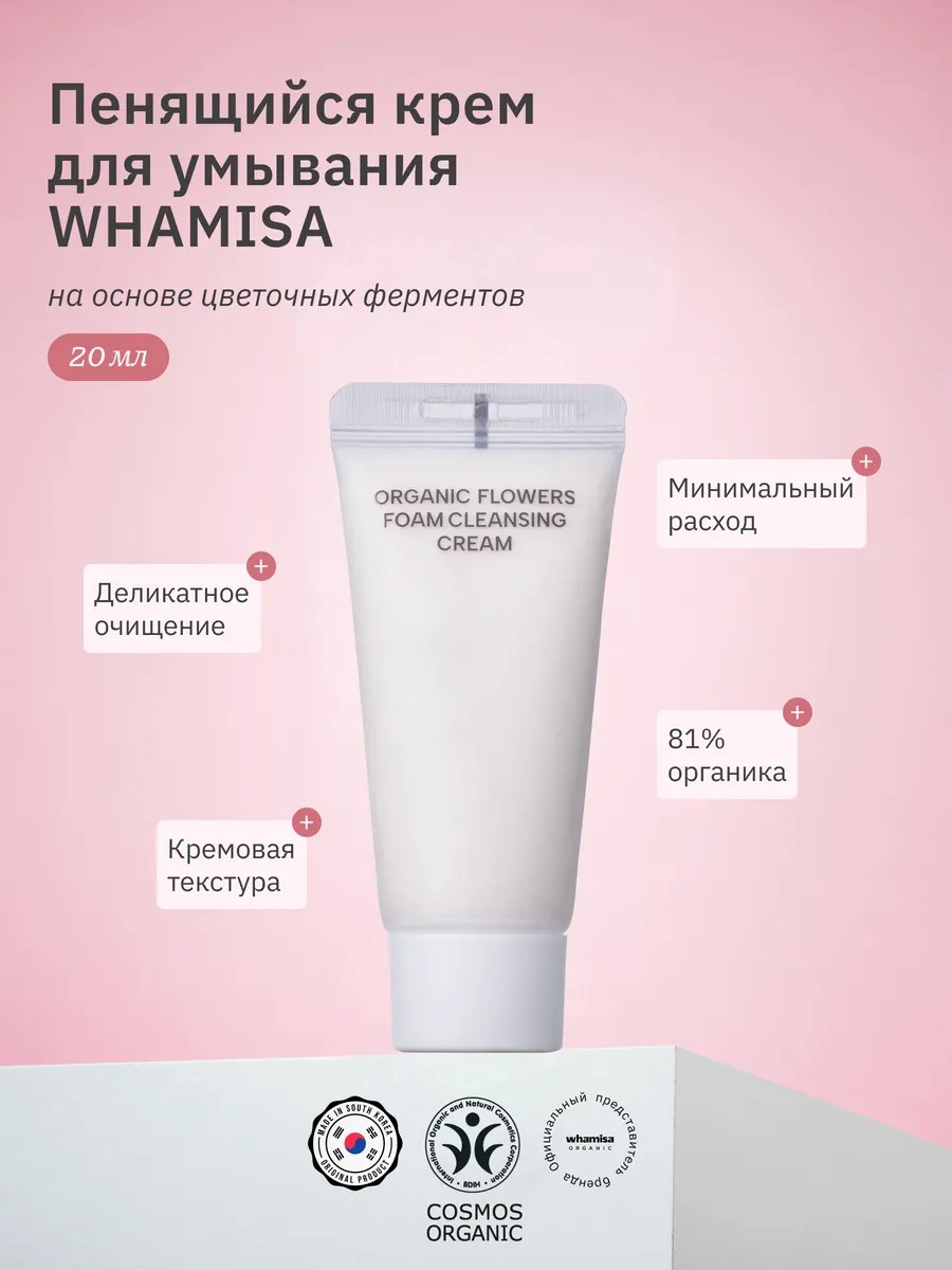 Очищающая пенка для лица WHAMISA –мультифункциональное средство для умывания. Это основной этап в уходе за лицом, который помогает удалить загрязнения, макияж и излишки кожного себума, мягко подготавливает кожу для последующего ухода. Благодаря лёгкой текстуре пенка проникает глубоко в поры и очищает их изнутри. Активные компоненты состава эффективно и бережно очищают, ухаживают и защищают кожу лица. Формула содержит лактобактерии, фильтраты и пребиотики, с выраженной биологической активностью, улучшают микробиом кожи, оказывают антимикробный эффект, устраняют воспаления и предупреждают появление прыщей. Средство подходит для ежедневного использования и любого типа кожи. Мягкий ПАВ, помогает равномерному распределению средства, не нарушающий гидролипидный баланс.