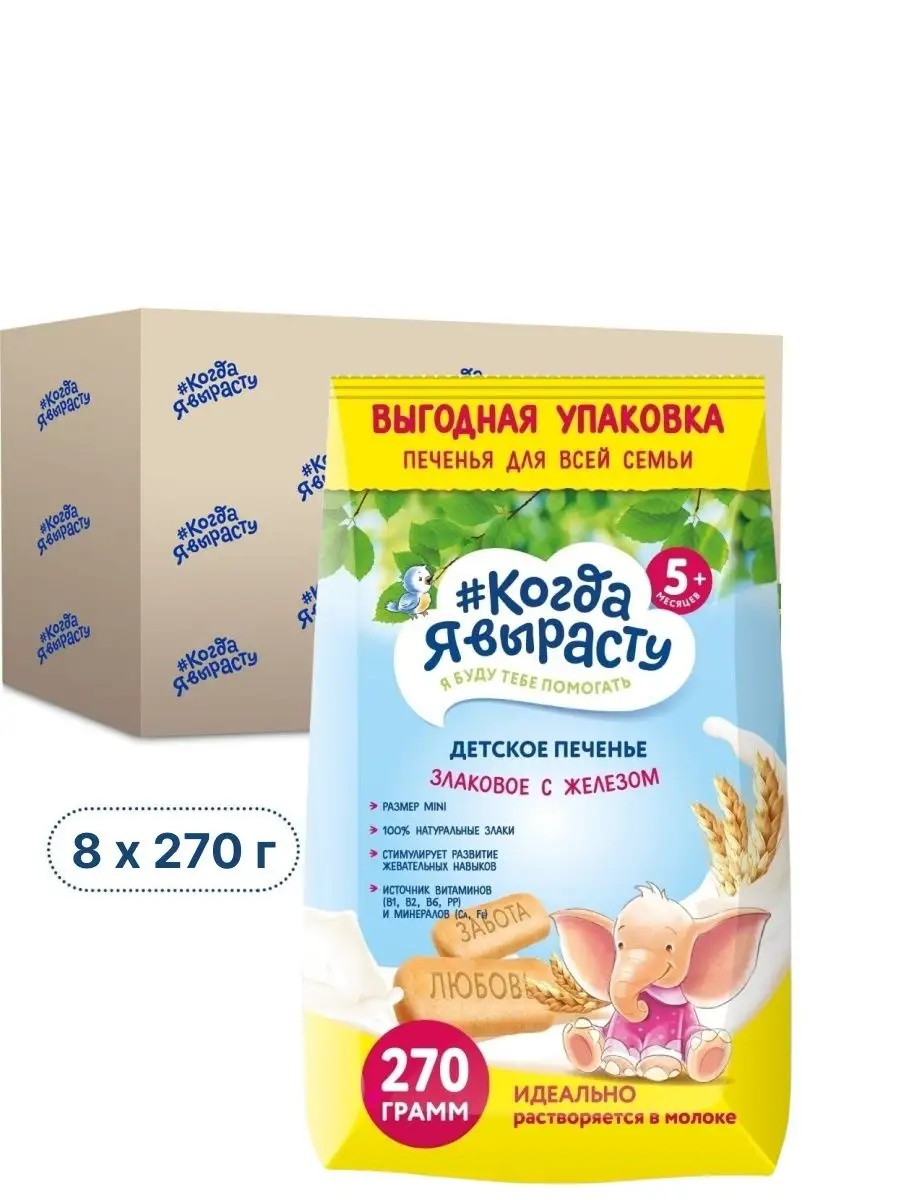 Когда я вырасту Печенье злаки-железо 8 штук по 270 гр