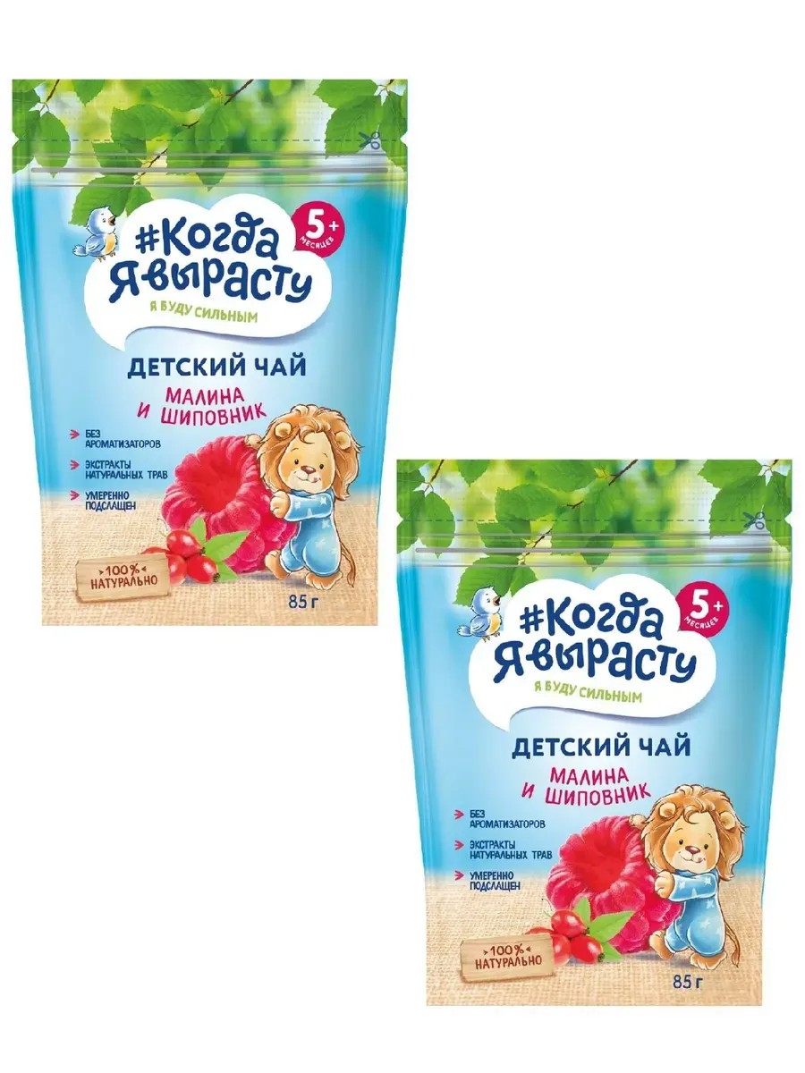 Когда Я вырасту, Чай гранулированный Малина-шиповник с витамином С для детей с 5месяцев, 85г, 2 шт. Полезный напиток для детей старше 5 месяцев. Инстантный (быстрорастворимый) чай великолепно растворяется в воде, обладает легким ароматом ромашки и умеренной сладостью. Ромашка оказывает противовоспалительное и успокаивающее действие, благоприятно воздействует на работу желудочно-кишечного тракта. Рекомендации по приготовлению: смешайте 100 мл теплой прокипяченной воды с 1 чайной ложкой (4г) чая, тщательно перемешайте. Не добавляете сахар. Остудите перед употреблением. Для детей старше 5-и месяцев рекомендуемое количество 150-200 мл чая в день. Всегда готовьте свежую порцию чая.