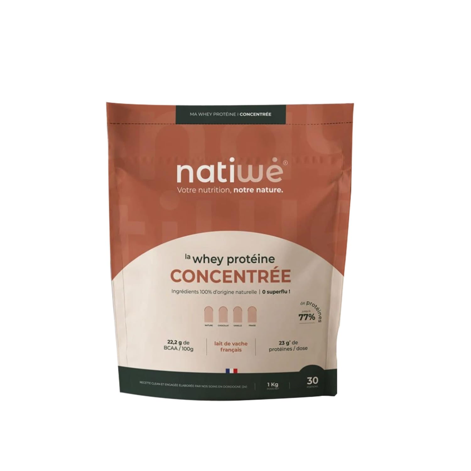 NATIWE, YOUR NUTRITION, OUR NATURE: Naturally sourced whey, 100 clean. Ultra-short supply chain, 100 French. No additives. No added sugars. Made in the Dordogne region of France, controlled from start to finish. DIRECTIONS FOR USE: Pour 1 scoop into 200-300 ml of water or plant-based milk, depending on the desired intensity. Shake and it's ready. Consume before or after training, or even at breakfast to avoid hunger pangs during the day. FRENCH PRODUCTION: This whey comes from a committed French dairy cooperative that supports milk producers through a CSR policy that is kind to its stakeholders. It combines excellence and social responsibility. ZERO OVER-THE-TOP: With only 4 ingredients (milk proteins, sunflower lecithin, flavorings stevia), this whey is 100 naturally sourced and has no added sugars. It stands out for its high BCAA content, representing 22.2 . CONCENTRATED WHEY FOR PERFORMANCE: Natiwé's Concentrated range strengthens your muscles, bones, and metabolism. This whey is gently extracted, without additives or preservatives, to offer you the highest quality product possible.NATIWE, VOTRE NUTRITION, NOTRE NATURE : Whey d'origine naturelle, 100 clean. Circuit ultra court, 100 français. Sans additifs. Sans sucres ajoutés. Fabriqué en Dordogne, maîtrisé de A à Z. CONSEILS D'UTILISATION : Versez 1 scoop dans 200-300 ml d'eau ou de lait végétal selon l'intensité désirée. Secouez et c'est prêt. À consommer avant ou après l'entraînement ou même au petit déjeuner pour éviter les fringales pendant la journée. PRODUCTION FRANCAISE : Cette whey est issue d'une coopérative laitière française engagée, qui soutient les producteurs de lait via une politique RSE bienveillante envers ses parties prenantes. Elle allie excellence et responsabilité sociale. ZERO SUPERFLU : Avec uniquement 4 ingrédients (protéines de lait, lécithine de tournesol, arômes stévia), cette whey est 100 d'origine naturelle et sans sucres ajoutés. Elle se distingue par sa forte teneur en BCAA, représentant 22,2 . WHEY CONCENTREE POUR PERFORMER : La gamme Concentrée de Natiwé renforce vos muscles, os et métabolisme. Cette whey est extraite en douceur, sans additifs ni conservateurs, pour vous offrir un produit de la plus haute qualité possible.Whey Protéine Concentrée - Goût Vanille - Prise De Masse - Meilleure Densité Osseuse, Récupération Performance - BCAA - Lait De Vache Français - 23g De Protéines Par Dose - Sachet De 1kg Vanille 1kg