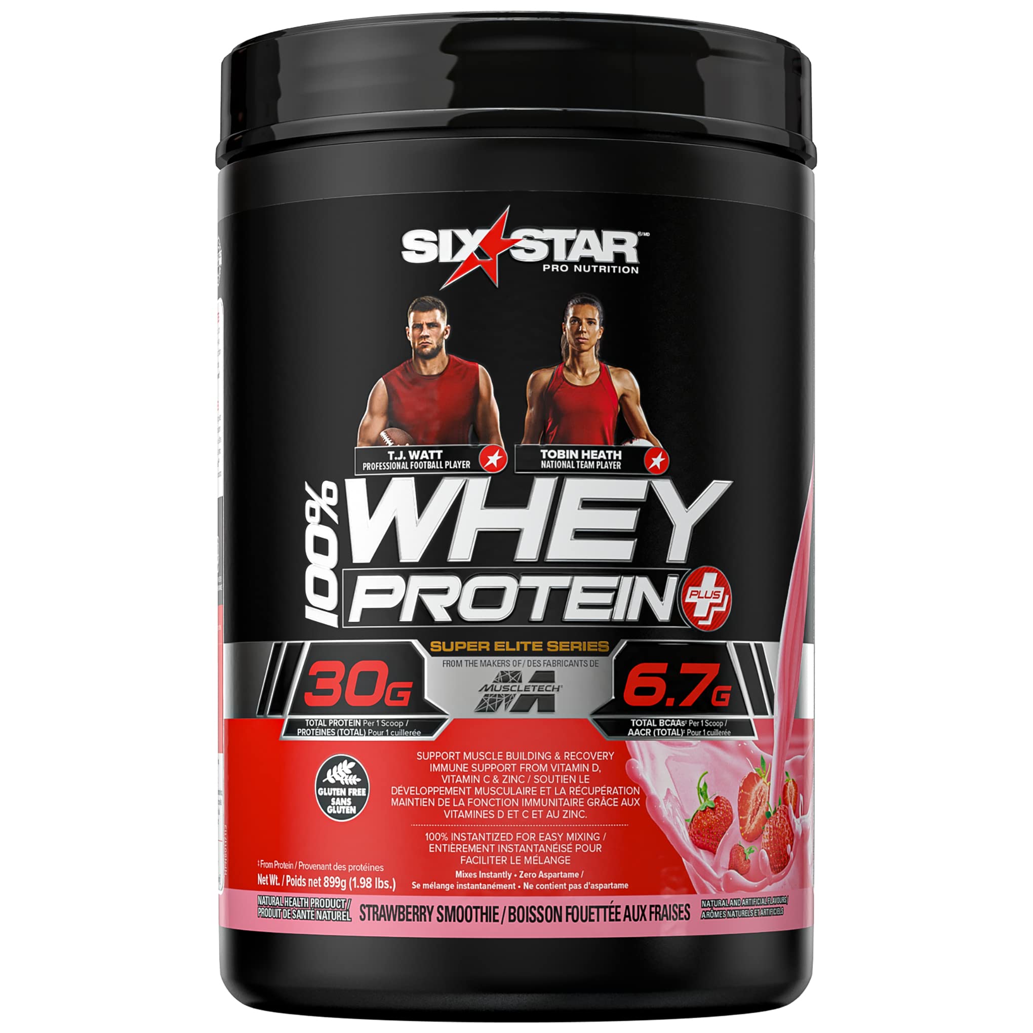 Whey Protein Powder Six Star 100% Whey Protein Plus Whey Protein Isolate & Peptides Lean Protein Powder for Muscle Gain Whey Isolate Protein Shake Strawberry 2 lbs Strawberry 20 Servings (Pack of 1)
