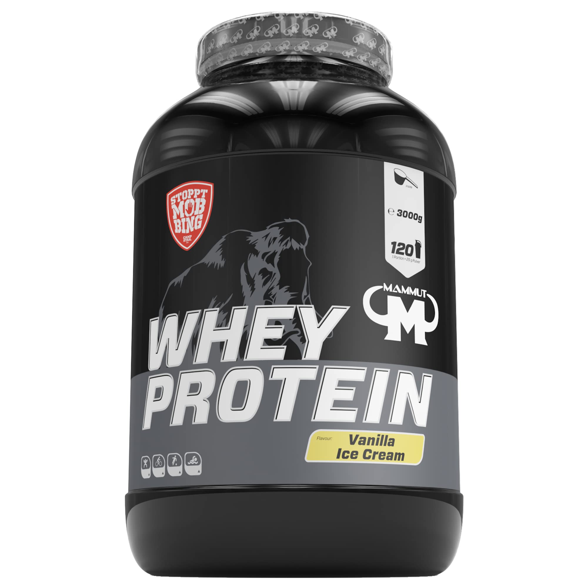 Mammut's whey protein is a high -quality whey protein powder for the production of a protein shake.The whey protein contained is tailored to the basic needs of an athlete.A shake contains 27 g of protein.Protein is an important basic building block in the body, the total stock of which is about 15 - 17 % of the body mass in an adult.It serves as a building material for the increase and maintenance of the muscles and the preservation of normal bones.The Mammut Whey protein has a naturally high proportion of BCAA.A short time after consumption of Mammut Whey Protein, the amino acid element in the blood increases, so it is particularly suitable before and after training.Because a high amino acid content in the blood leads to better care for the muscles before or after training.The abbreviation BCAA stands for the ""Branched Chain Amino Acids"", in German branching chain amino acids.They include L-LEUCIN, L-ISOLEUCIN and L-Valin.Amino acids are the basic building blocks of all proteins and therefore important for the body.The BCAA contained in the whey protein are three of the 8 essential amino acids that have to be made available to our body from food, since it itself is unable to form them.Mammut recommends mixing 25 g (2 painted dosing spoons) whey protein with 300 ml fat -low milk (1, 5 %).A good time to record protein is immediately after training, because strength training in particular stimulates the muscular protein synthesis.The whey protein is also suitable as a snack. Ingredients / ingredients 97.6% whey protein concentrate, aroma, emulsifier (lecithine), sweeteners (sucralose, acesulfam k). Instructions 25 g (2 painted dosing spoons) with 300 ml fat -low milk (1.5 %) Warnings A varied, balanced diet and a healthy lifestyle are important for health. Address manufacturer/importer Fitnesshotline GmbH, Beethoven Straße 9, industrial area West, 08209 Auerbach, Germany More fast increase in the amino acid element in the blood - contains a naturally high proportion of BCAA, which after a short time causes the amino acid level in the blood and thus better supplies the muscles with amino acids.Ideal solubility and with a practical dosing spoon - no matter how you mix your shake best, the Mammut Nutrition Whey Protein is ideal in water and milk and can be ideal with the enclosed dosing spoon.To build and maintain muscles - protein contributes to the increase and maintenance of the muscles and the preservation of normal bones.27 g protein per portion - protein is an important basic building block in the body, the total stock for an adult is approx. 15 - 17 percent of the body mass, so protein should always be absorbed in sufficient quantities - this does not only apply to athletes.High quality whey protein - for a particularly delicious protein shake that is ideally matched to the basic needs of athletes, whether after training or as a snack, the body is supplied with high -quality protein at any time. Das Whey Protein von Mammut ist ein hochwertige Molkenproteinpulver zur Herstellung eines Eiweißshakes. Das enthaltene Wheyprotein ist auf die Grundbedürfnisse eines Sportlers abgestimmt. Ein Shake enthält 27 g Protein. Eiweiß ist ein wichtiger Grundbaustein im Körper, dessen Gesamtbestand bei einem Erwachsenen ca. 15 - 17 % der Körpermasse ausmachen. Es dient als Baustoff für die Zunahme und Aufrechterhaltung der Muskulatur und der Erhaltung normaler Knochen. Das Mammut Whey Protein hat einen natürlich hohen Anteil an BCAA. Kurze Zeit nach dem Verzehr vom Mammut Whey Protein steigt das Aminosäurelevel im Blut an, daher eignet er sich besonders vor und nach dem Training. Denn ein hoher Aminosäuregehalt im Blut führt zu einer besseren Versorgung der Muskulatur vor oder nach dem Training. Die Abkürzung BCAA steht für die englische Bezeichnung ""Branched Chain Amino Acids"", auf Deutsch verzweigtkettige Aminosäuren. Zu Ihnen gehören L-Leucin, L-Isoleucin und L-Valin. Aminosäuren sind die Grundbausteine aller Proteine und somit wichtig für den Körper. Die im Whey Protein enthaltenden BCAA sind drei der 8 essentiellen Aminosäuren, die unserem Körper aus der Nahrung zur Verfügung gestellt werden müssen, da er selbst nicht in der Lage ist, diese zu bilden. Mammut empfiehlt 25 g (2 gestrichene Dosierlöffel) Whey Protein mit 300 ml fettarmer Milch (1, 5 %) zu mischen. Ein guter Zeitpunkt zur Aufnahme von Eiweiß ist direkt nach dem Training, denn speziell Krafttraining stimuliert die muskuläre Eiweißsynthese. Das Whey Protein eignet sich aber auch als Zwischenmahlzeit. INHALTSSTOFFE / ZUTATEN 97,6% MOLKENPROTEINKONZENTRAT, Aroma, Emulgator (Lecithine), Süßungsmittel (Sucralose, Acesulfam K). GEBRAUCHSANWEISUNG 25 g (2 gestrichene Dosierlöffel) mit 300 ml fettarmer Milch (1,5 %) WARNHINWEISE Eine abwechslungsreiche, ausgewogene Ernährung und eine gesunde Lebensweise sind wichtig für die Gesundheit. ANSCHRIFT HERSTELLER/IMPORTEUR Fitnesshotline GmbH, Beethoven Straße 9, Industriegebiet West, 08209 Auerbach, Deutschland MehrSCHNELLER ANSTIEG DES AMINOSÄURELEVELS IM BLUT - Enthält einen natürlich hohen Anteil an BCAA, was schon nach kurzer Zeit das Aminosäurelevel im Blut ansteigen lässt und somit die Muskeln besser mit Aminosäuren versorgt. Ideale LÖSLICHKEIT UND MIT PRAKTISCHEM DOSIERLÖFFEL - Egal wie Sie ihren Shake am liebsten mixt, das Mammut Nutrition Whey Protein löst sich ideal in Wasser und Milch und lässt sich mit dem beiliegenden Dosierlöffel ideal dosieren. ZUM AUFBAU UND ERHALT VON MUSKELN - Protein trägt zur Zunahme und Aufrechterhaltung der Muskulatur und der Erhaltung normaler Knochen bei. 27 G PROTEIN PRO PORTION - Protein ist ein wichtiger Grundbaustein im Körper, der Gesamtbestand bei einem Erwachsenen beträgt ca. 15 - 17 Prozent der Körpermasse, Protein sollte deshalb immer in ausreichender Menge aufgenommen werden - das gilt nicht nur für Sportler. HOCHWERTIGES WHEYPROTEIN - Für einen besonders leckeren Protein Shake, der ideal auf die 