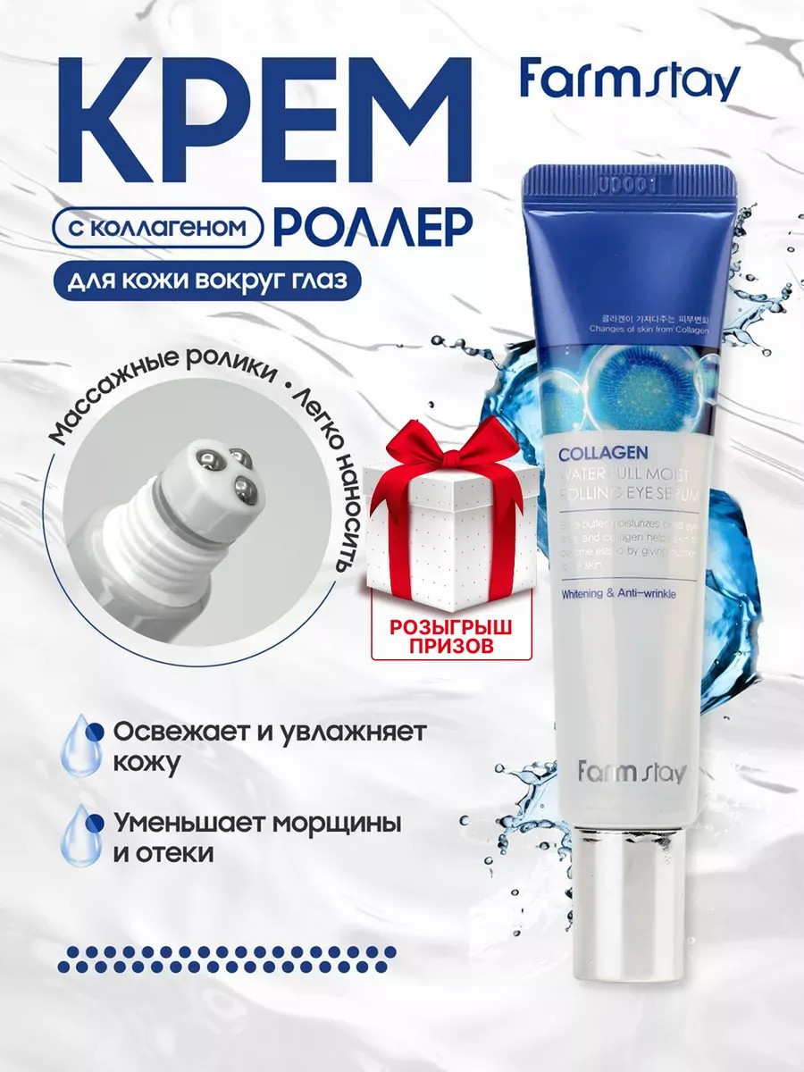 Увлажняющая сыворотка для глаз Корея, сыворотка для кожи вокруг глаз, для век против морщин увлажняет, освежает, делает кожу лица упругой и эластичной. Антивозрастная сыворотка для лица поддерживает гидробаланс и омолаживает кожу. Корейская сыворотка для лица в удобном формате. Роликовый аппликатор позволяет нанести нужное количество сыворотки под глаза, сделать легкий лимфодренажный массаж. Farm stay сыворотка для глаз 2 ВИДА: с МУЦИНОМ УЛИТКИ питает, смягчает, выравнивает тон, от воспалений и шелушения; с КОЛЛАГЕНОМ подтягивает кожу, от морщин, антивозрастной уход, лифтинг. крем вокруг глаз/ от морщин вокруг глаз/ от мимических морщин/ омолаживающий/ увлажняющий/ антивозрастной крем/ лифтинг кожи лица/ подарок женщинам/ Farm Stay Collagen Water Full Moist Rolling Eye Serum/ Farm Stay Black Snail Premium Rolling Eye Serum.