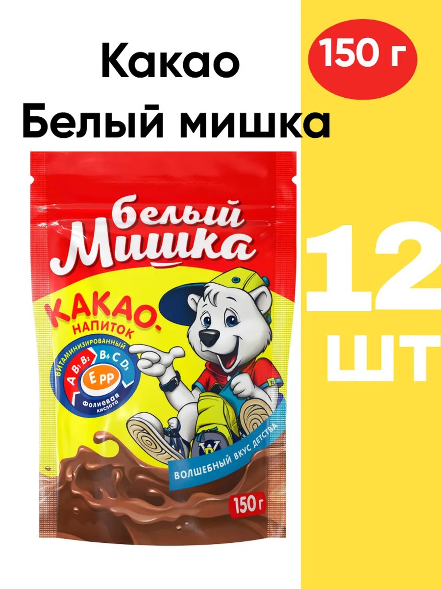 White Bear granulated cocoa improves mood and boosts immunity. This chocolate drink has a bright and rich taste. It contains vitamins E, C, B1, B2, B6, PP, A, D3, and folic acid.