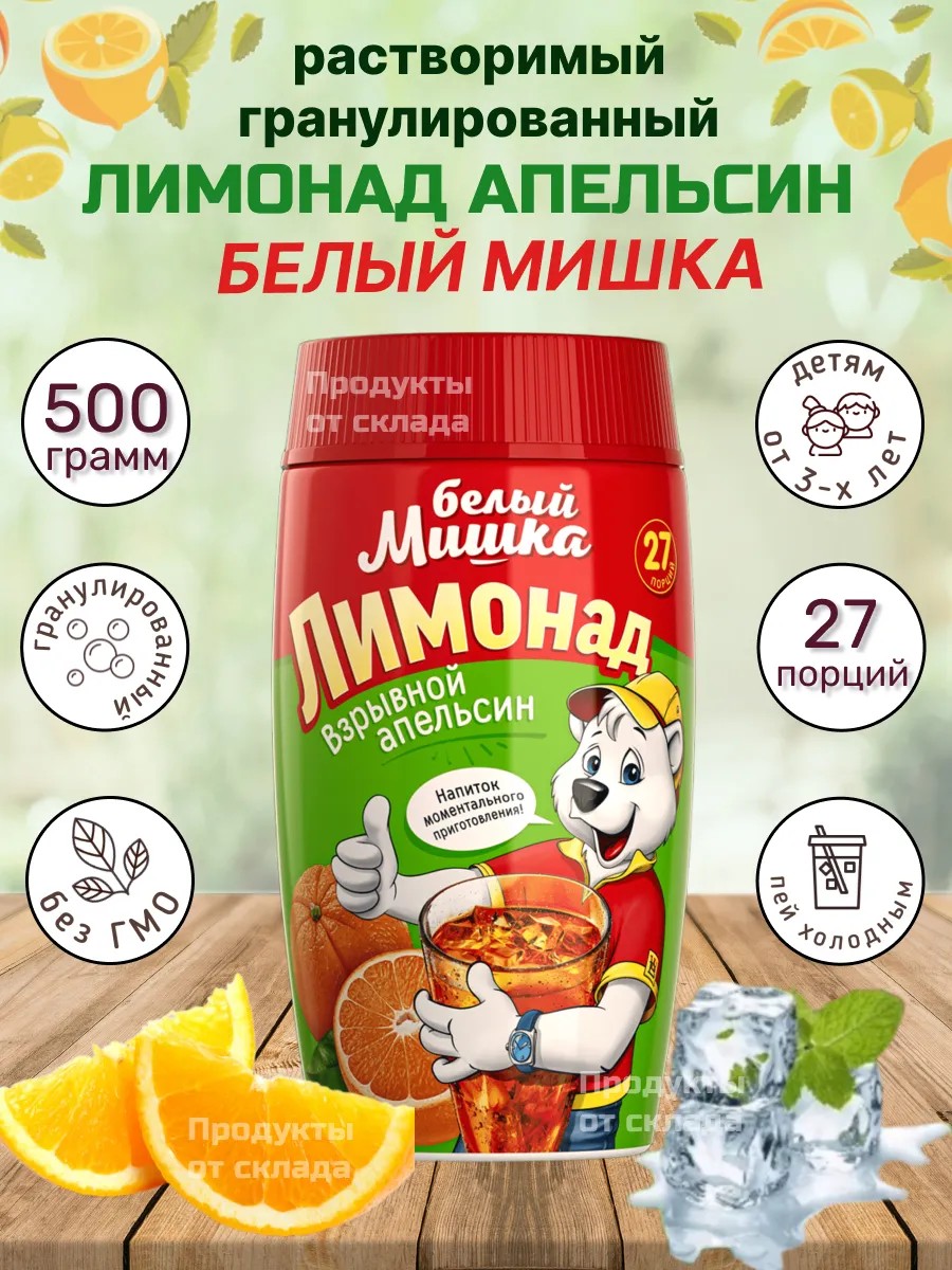Закажите гранулированный Лимонад Взрывной Апельсин Белый Мишка прямо сейчас в магазине Продукты от склада, порадуйте своих самых близких и родных!