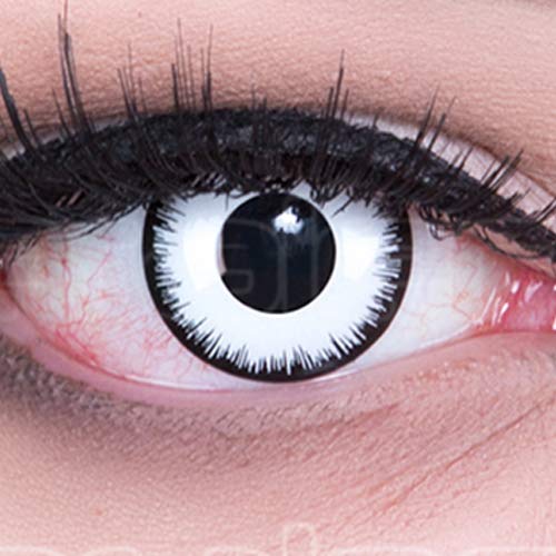 Values: soft contact lenses with strength: -3.50;Diameter: 14.0mm, radius of curvature: 8.60 °, water content: 38%, monthly lenses i.e. 3 months applicable with contact lens containers.Universally fitting: opaque for every eye color - bright as well as dark / brown eyes;Can be used for large and small eyes - ideally suited as a horror costume / cladding.Super effect: Extremely creepy motif lenses Fun Crazy for your disguise as a vampire, zombie, demon, spirit, werewolf, Volturi, cosplay, manga, sharingan - or simply for the next Halloween party.Advantages: Detailed operating instructions in several languages ??+ free contact lens container + video tutorials + 10 years Meralens / Funnylens experience.TOP quality: Colorful contact lenses / motif contact lenses branded product / brand quality of funnylens suitable for every Halloween costume and carnival costume available with prescription.WERTE: weiche Kontaktlinsen mit Stärke: -3,50; Durchmesser: 14,0mm, Krümmungsradius: 8,60°, Wassergehalt: 38%, Monatslinsen d.h. 3 Monate anwendbar mit Kontaktlinsenbehälter. UNIVERSELL PASSEND: deckend für jede Augenfarbe - helle wie auch dunkle / braune Augen; einsetzbar für große und kleine Augen – bestens geeignet als Horror Kostüm / Verkleidung. SUPER EFFEKT: Extrem gruselige Motiv-Linsen Fun Crazy für Ihre Verkleidung als Vampir, Zombie, Dämon, Geist, Werwolf, Volturi, Cosplay, Manga, Sharingan - oder einfach für die nächste Halloween Party. VORTEILE: Ausführliche Bedienungsanleitung in mehreren Sprachen + gratis Kontaktlinsenbehälter + Video Tutorials + 10 Jahre MeralenS / Funnylens Erfahrung. TOP QUALITÄT: Bunte Kontaktlinsen / Motivkontaktlinsen Markenprodukt / Markenqualität von Funnylens passend für jedes Halloween-Kostüm und Faschings-Kostüm verfügbar mit Sehstärke.Weiße Crazy Zombie Fun Kontaktlinsen 1 Paar Farbige Weiße Lunatic Kontaktlinsen Mit Stärke -3,50 Dioptrien und Behälter. Perfekt zu Halloween, Karneval, Fasching oder Fasnacht -3.50