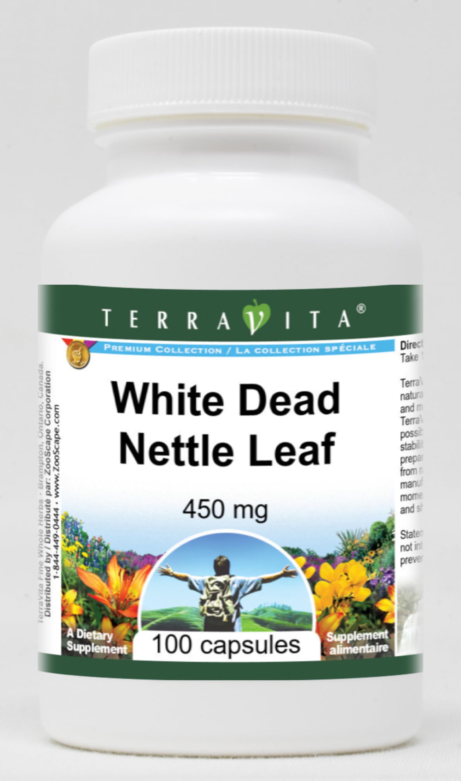 White Dead Nettle Leaf - 450 mg (100 capsules, ZIN: 511448) Packaged in the United States in a GMP certified facility (Good Manufacturing Practice). No fillers. Manufacturer: TerraVita Size: 100 capsules Easy-to-swallow Capsules in a sealed bottle. Ingredients: Gelatin, Water, Nettle, White Dead - 450 mg