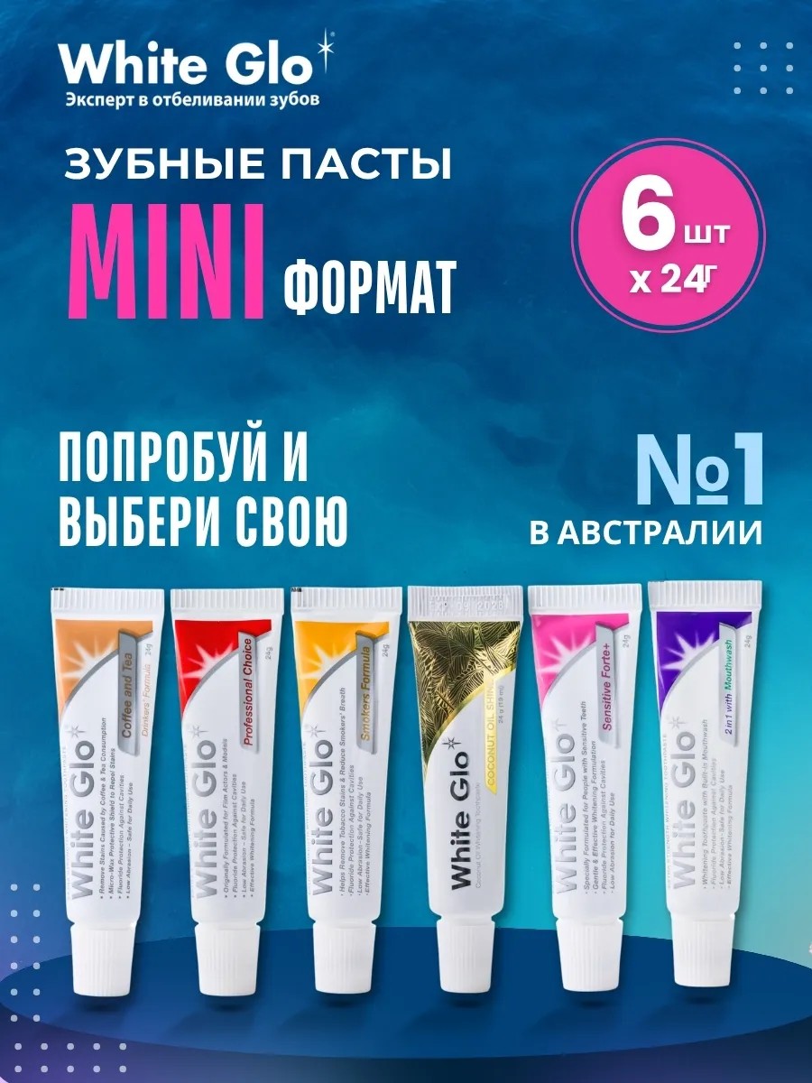 white glo Зубная паста отбеливающая набор 6 шт. по 24 гр.