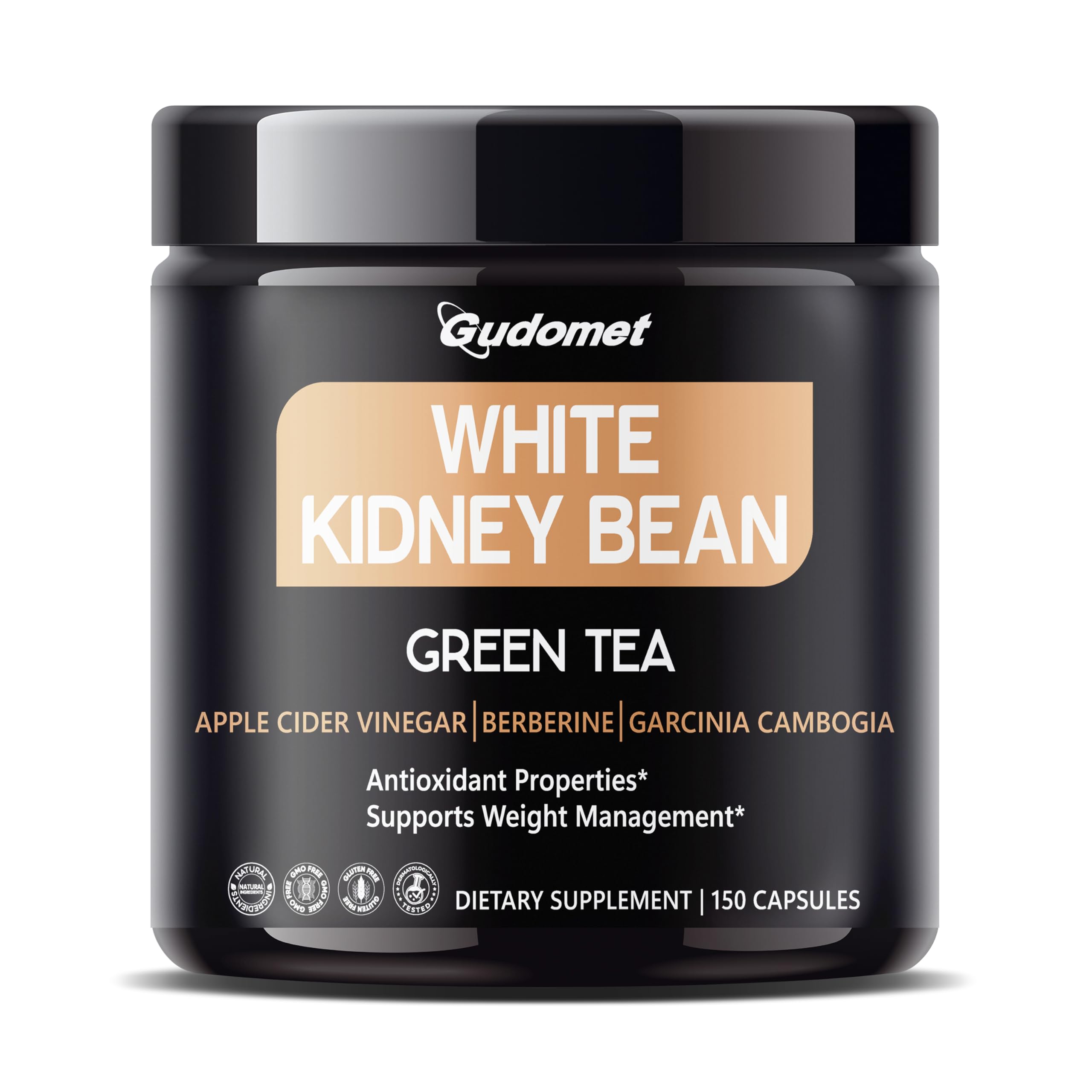 Gudomet White Kidney Bean Complex with Green Tea, Apple Cider Vinegar, Berberine HCl, Garcinia Cambogia Black Pepper – 150 Vegetarian Capsules – 1-Capsule Daily