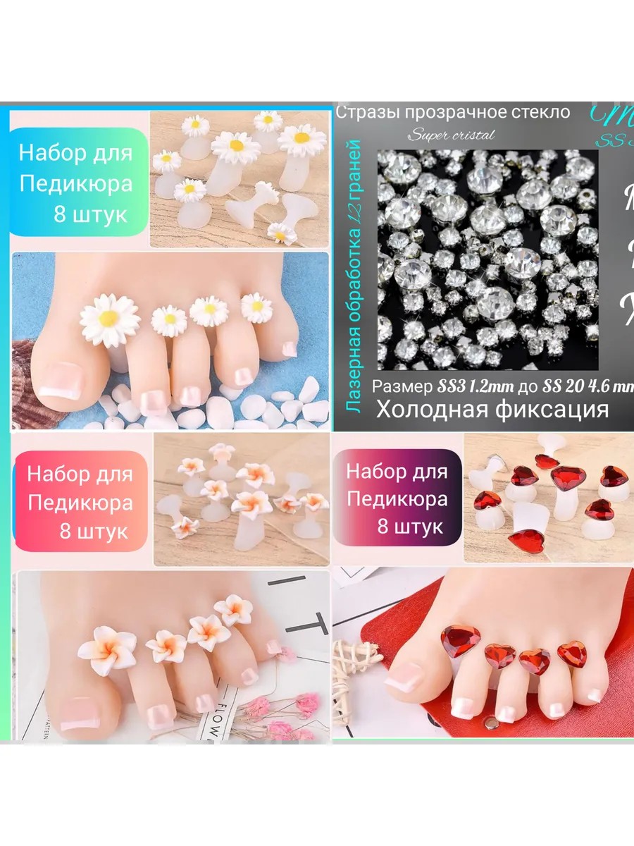 Fashionable, reusable, and beautiful toe separators for pedicures! A trendy pedicure set. Separate, interdigital separators will help prevent gel polish from smearing on your toes. Your nails and feet will be safe! Convenient for both the nail technician and the client. Suitable for use in a beauty salon or at home. Convenient and comfortable to use under a nail lamp; the separator won't fall out, relieving pressure on the heel. The ideally sized spacer won't interfere with your nail file, clippers, or scissors. The fastener is smooth and doesn't pinch. Suitable for feet of any size, including thin, regular, and plump. The silicone material is soft and safe, won't damage the skin, and is hypoallergenic. This pedicure separator is reusable, not disposable. Wash and disinfect after each use. Suitable for disinfection and sterilization: Alaminol and other solutions, sphera, and an ultrasonic bath. Caring for your feet will become a pleasure. And your feet will be like a baby's! The separator provides reliable protection for your pedicure! Packaged in a gift bag, each bag contains 8 separators: 2 large and 6 small. Can be purchased as a gift.
