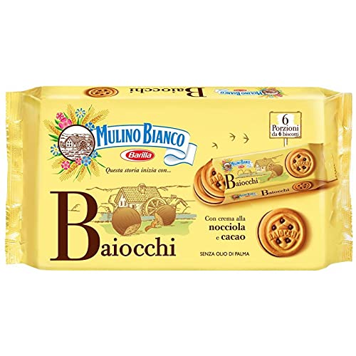 Mulino Bianco's iconic biscuit recipe: two discs of exquisite shortcrust pastry deliciously filled with cocoa and hazelnut cream. For a moment of Italian pleasure!. INGREDIENTS Biscuit: WHEAT flour, sugar, sunflower oil, EGGS, skimmed MILK powder, pasteurized whole MILK, raising agents (ammonium bicarbonate, sodium bicarbonate, monopotassium tartrate), salt, WHEAT starch, flavoring. HAZELNUT and cocoa CREAM 26.5 : sugar, vegetable fats and oils (shea, coconut, cocoa), HAZELNUTS 6.4 of the finished product, cocoa 2.7 of the finished product, skimmed MILK powder, WHEAT starch, flavoring. May contain traces of other NUTS, SEEDS DIRECTIONS FOR USE hxwrILIWhxwrlrJwQBILILwrIWOqQB Baiocchi Nocciola Snack 336G. MULINO BIANCO. Chocolate Biscuits. Biscuits, Pastry. Sweet Groceries. La recette iconique de biscuit de Mulino Bianco: deux disques d'une exquise pâte sablée délicieusement fourrés de crème au cacao et à la noisette. Pour un moment de plaisir à l'italienne!. INGRÉDIENTS Biscuit : farine de BLE, sucre, huile de tournesol, OEUFS, LAIT écrémé en poudre, LAIT entier pasteurisé, poudres à lever (carbonate acide d'ammonium, carbonate acide de sodium, tartrate monopotassique), sel, amidon de BLE, arôme. CREME à la NOISETTE et au cacao 26,5 : sucre, matières grasses et huiles végétales (karité, coco, cacao), NOISETTES 6,4 du produit fini, cacao 2,7 du produit fini, LAIT écrémé en poudre, amidon de BLE, arôme. Peut contenir des traces d'autres FRUITS A COQUE, GRAINES MODE D'EMPLOI hxwrILIWhxwrlrJwQBILILwrIWOqQB Baiocchi Nocciola Snack 336G. MULINO BIANCO. Biscuits Chocolatés. Biscuits, Pâtisserie. Epicerie Sucrée.