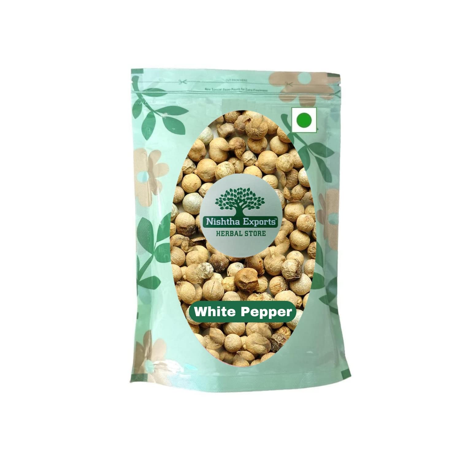 White Pepper-Safed Mirch-Dakhani Mirch-Piper Nigrum-Spices 100 Gram White pepper powder is commonly used in light coloured European dishes like casseroles, pies,mayonnaise, cream-based soups and white sauces. It is often used in instant noodles and snacks. In Indian cuisine, white pepper powder is used for white, cream-based gravies and curries. Nishtha Exports provides authentic collection of Spices in their original forms. 100 Natural ,No Trans-fats, cooking oils, No chemicals, preservatives, Colors, flavours, Nothing artificial added. We do not comprise on the quality and provides nothing but the best.Fresh and Pure100 Pure And Fresh Herbs. We are providing machine sorted and handpicked Products. No Artificial colour,Flavours Preservative. We do not use any Harmful Chemicals for Cleaning the Products. We are Providing Original form of Herbs. White pepper can be used for preparing a wide variety of dishes, including salads, sausages, etc. Generally, white pepper is an ingredient in light-coloured recipes. It is great to preserve the colour of any light dishes. In addition, white pepper is an aromatic spice. A generous amount of white pepper in any cuisine will up its aroma quotient. Due to its complex procedure of availability, White Pepper is generally expensive than Black Pepper in the market. White Pepper is commonly used in Thai, Portuguese, and Chinese cuisines. The taste of the white Pepper is hotter than Black Pepper. The flavor of White Pepper is less complex than Black Pepper. White Pepper is a seed of ripe fruit of pepper plant and is an inner seed of pepper berry. The White Pepper plant is a vine plant. White pepper is usually milder than Black Pepper. It is a native plant of South India.