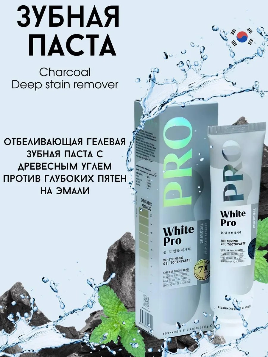 | Полное наименование товара | Отбеливающая гелевая зубная паста с древесным углем против глубоких пятен на эмали White Pro Charcoal Deep stain remover. |