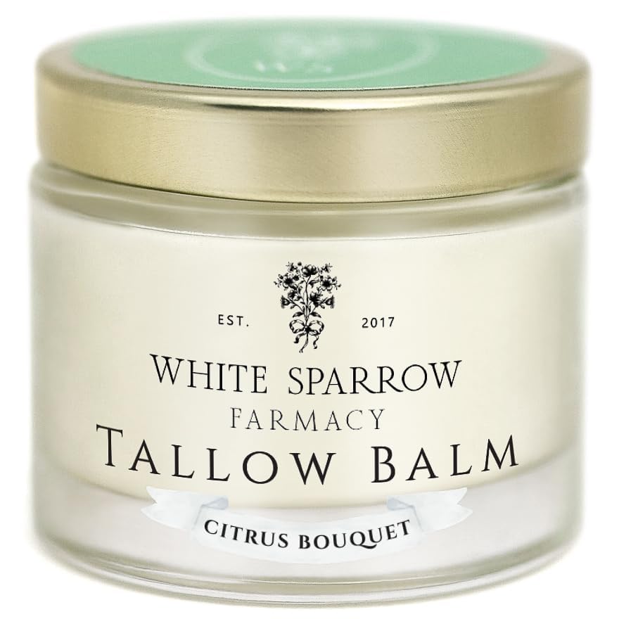 White Sparrow Farmacy Organic Grass Fed Tallow Balm - (Citrus Bouquet) Organic Tallow from Grass Fed Cows & All Organic ingredients. For Face and Body. (2.0 oz)