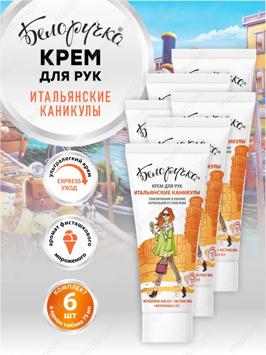 БЕЛОРУЧКА Крем для рук Итальянские каникулы питательный 75 мл, 6 шт