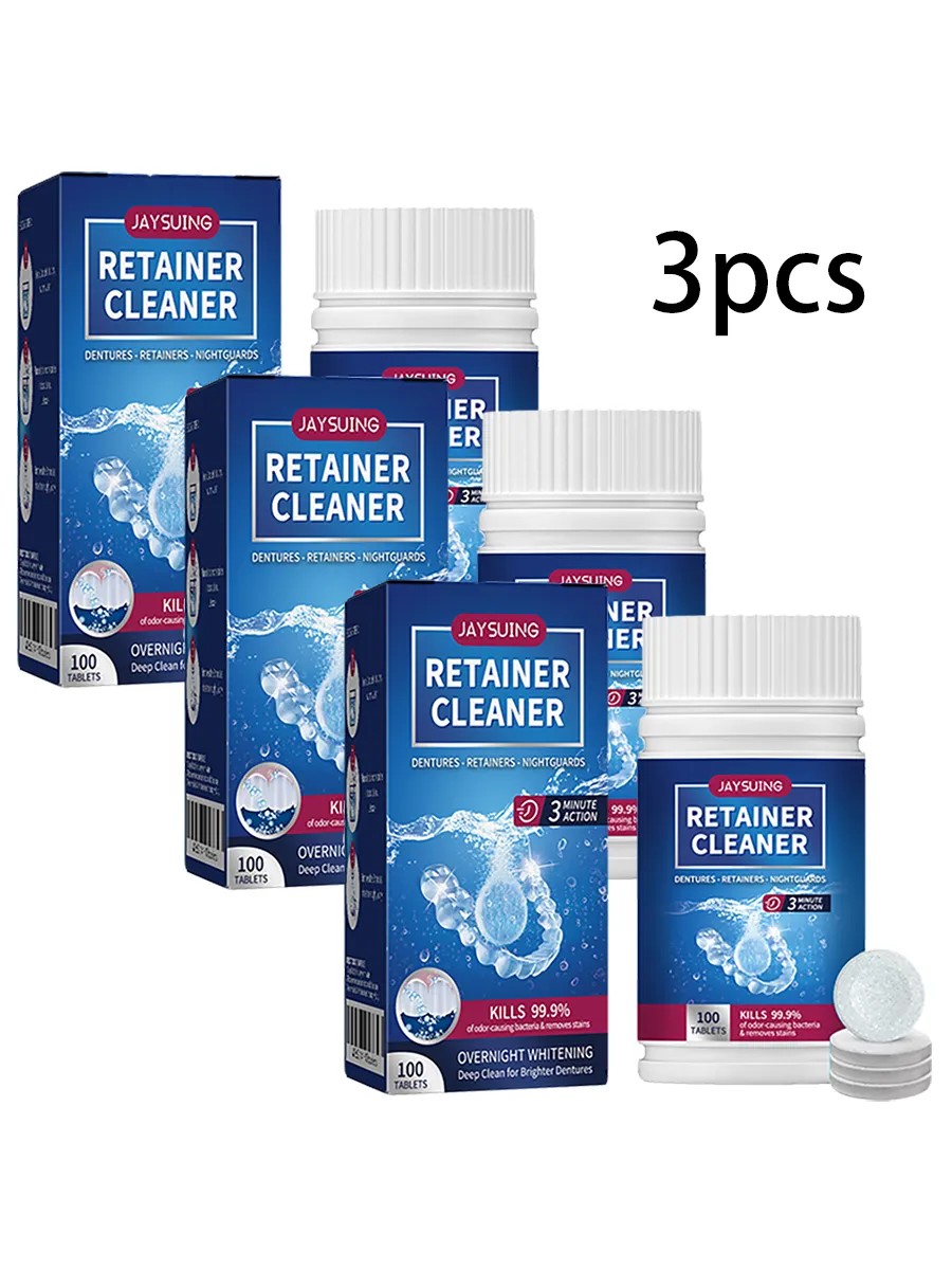 Чистящие таблетки для зубных протезов содержат натрий-додецилбензолсульфат, динатрий-ЭДТА и алюминиевую пудру. Они эффективно удаляют пятна и зубной налет, защищают зубы с помощью простых шагов, устраняют вредные бактерии и неприятный запах, удаляют неприятный запах, зубной налет и зубной камень.