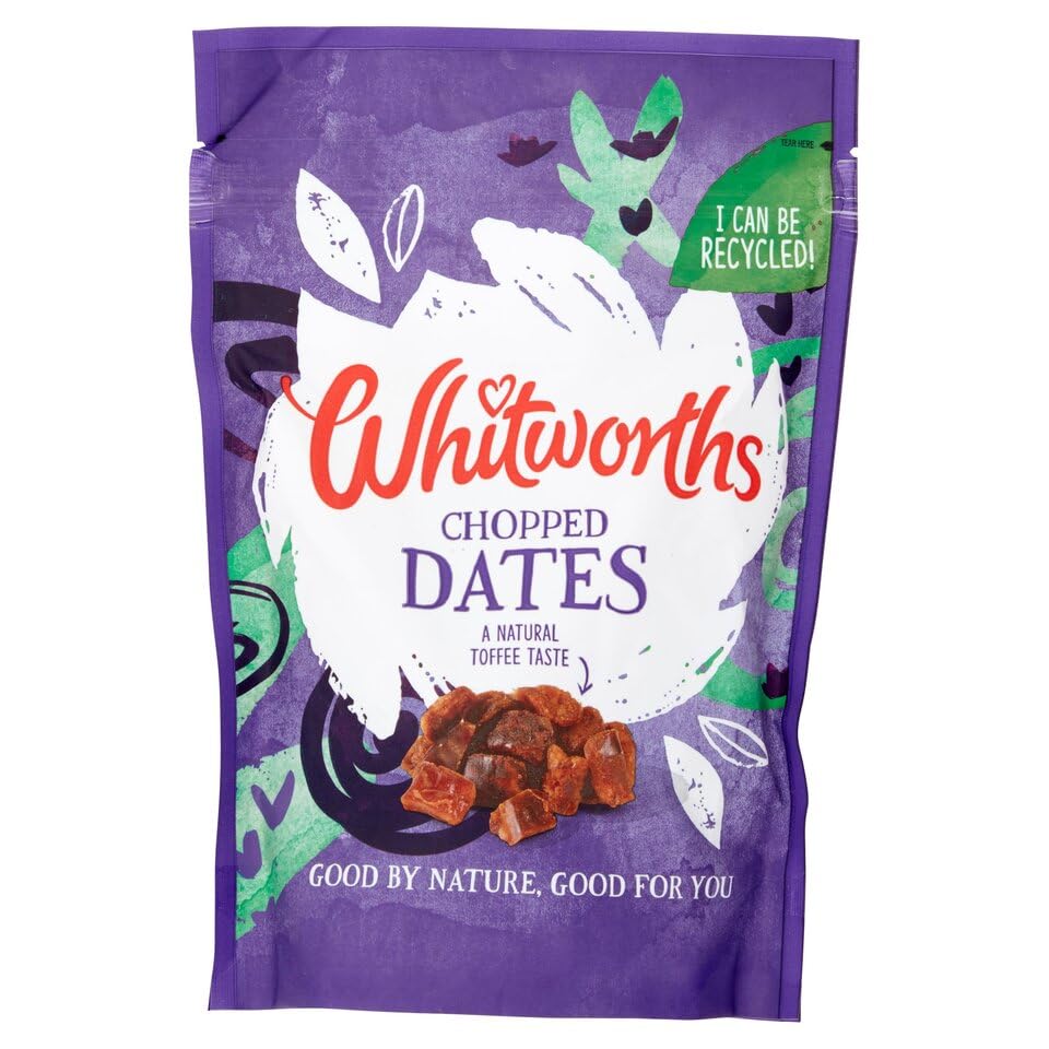 Whitworths | Chopped Dates 250G | Dried Chopped Dates | A natural toffee taste | Good by nature | good for you | Suitable for vegans