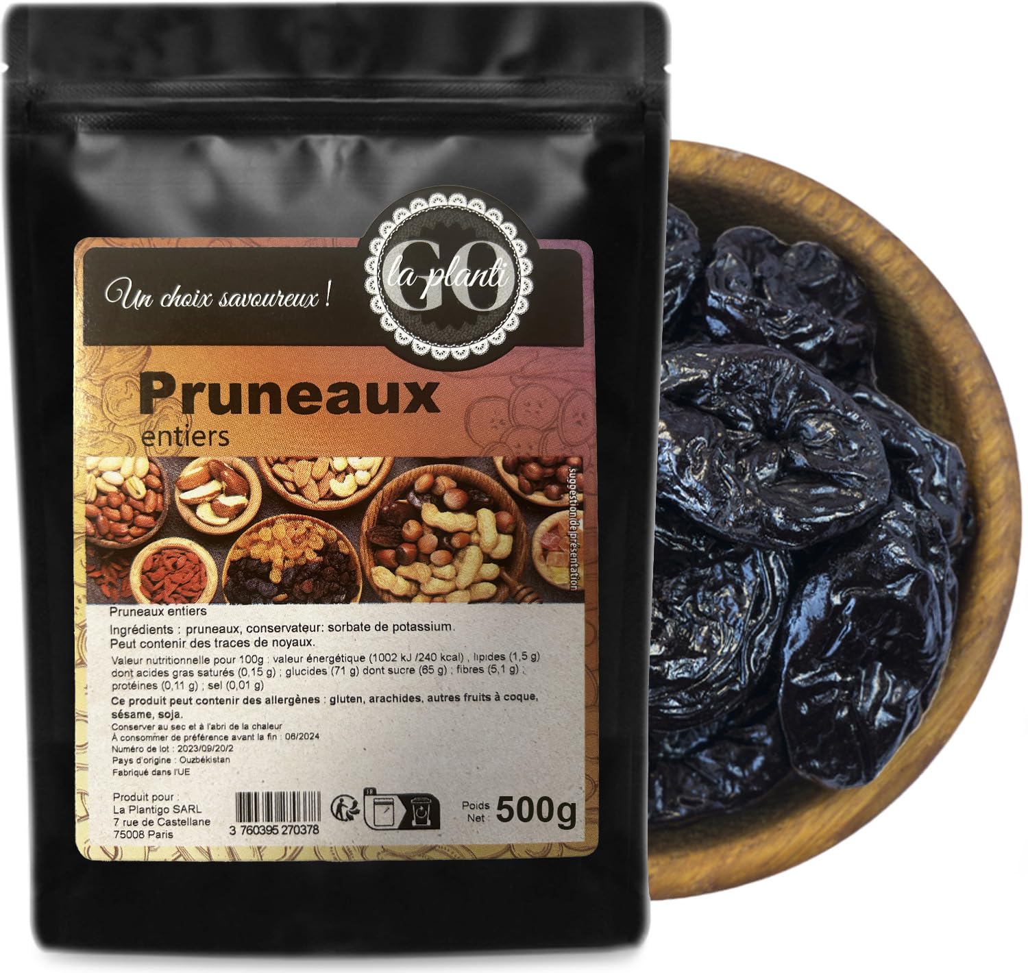 Ingredients : Prunes, potassium sorbate preservative. May contain traces of nuclei Nutritional value for 100g of prunes: Energy value - 1002kJ 240 kcal Lipids -1.5 g Including saturated fatty acids 0.15 g Carbohydrates – 71 g Including sugars – 65 g Fiber 5.1 g Protein 0.11 g Salt 0.01 g Nutritional values were calculated from database and raw material specifications. Individual batches may vary slightly. Information on allergens: This product may contain allergens: gluten, peanuts, nuts, sesame, soy. Packaging method: The product is packaged in thick "doypack" type bags. The package has a welded drawstring closure, which allows easy opening and closing multiple times. Thanks to this simple technology, the product maintains its freshness. Its organoleptic properties do not change during the entire shelf life. Thanks to high sales volumes and the rotation of our stocks, LA PLANTIGO products are always fresh, which encourages bulk purchases and the storage of food in the pantry at home.An interesting idea is to add prunes to a vegan buckwheat pâté. We encourage you to try and cook this delicious dried fruit at home. Prunes are a perfect snack for many gourmets. They are also traditionally added to meat dishes, including pork loin, pâté, or sauerkraut. The culinary uses of prunes are limitless only our imagination can limit them. Dried plums are often used in dishes such as porridge, desserts, or yogurts. By incorporating prunes into your daily diet, you will diversify your prepared dishes in terms of nutritional value and sensory properties. Prunes are perfect for enriching your menu at any time of day. Prunes are whole, pitted plums that have undergone a drying process. They are used in cuisines all over the world. Ingrédients : Pruneaux, conservateur sorbate de potassium. Peut contenir des traces de noyaux Valeur nutritionnelle pour 100g de pruneaux: Valeur énergétique- 1002kJ 240 kcal Lipides -1.5 g Dont acides gras saturés 0.15 g Glucides – 71 g Dont sucres – 65 g Fibres 5.1 g Protéines 0.11 g Sel 0.01 g Les valeurs nutritionnelles ont été calculées à partir de base de données et spécifications de matières premières. Les lots individuels peuvent varier légèrement. Information sur allergènes : Ce produit peut contenir les allergènes : gluten, arachides, fruit à coque, sésame, soja . Méthode d'emballage : Le produit est emballé dans des sachets épais de type « doypack ». L'emballage a une fermeture à cordon soudé, ce qui permet l'ouverture et la fermeture facile plusieurs fois. Grâce à cette technologie simple le produit garde sa fraicheur. Ses propriétés organoleptiques ne changent pas pendant toute la durée de conservation. Grâce aux volumes de ventes important et la rotation de nos stocks, les produits LA PLANTIGO sont toujours frais, ce qui favorise les achats en gros et le stockage des aliments dans le garde-manger à la maison.Une idée intéressante consiste à ajouter des pruneaux au pâté végan à base de sarr. Nous vous encourageons donc à tester et à cuisiner ce délicieux fruit sec chez vous. Les pruneaux sont un en-cas parfait pour de nombreux gourmets. D'autre part, ils sont traditionnellement ajoutés à des plats de viande, notamment au longe de porc, au pâté ou à la choucroute. L'utilisation culinaire des pruneaux est illimitée. Seule notre imagination pourrait nous restreindre. Les prunes séchées sont souvent utilisées dans des plats tels que des porridges, des desserts ou des yaourts. En intégrant des pruneaux dans votre alimentation quotidienne, vous diversifierez les plats préparés en termes de valeurs nutritives et de propriétés sensorielles. Les pruneaux conviennent parfaitement pour enrichir votre menu à tout moment de la journée. Les pruneaux sont des prunes entières sans noyau, ayant été soumises au processus de séchage. Ils sont utilisés dans les cuisines du monde entier.
