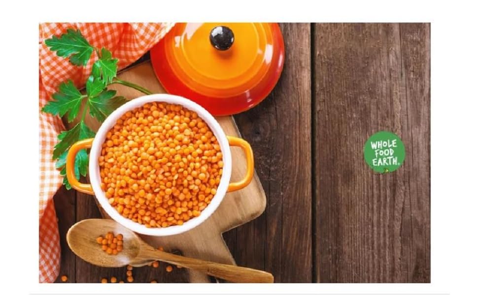 The lentil plant is one of our oldest food sources, having originated in Asia and North Africa. There are many different types, but the most used in cooking are brown, red, dark speckled, green, and yellow lentils. These "beans" are extracted from their shells and split in half along their natural seams, allowing for speedier cooking and removing the need for soaking. When cooked, split peas are high in protein, fibre and low in fat. Vegetarians may obtain a lot of protein from lentils. Lentils are an essential element of vegan and vegetarian diets when protein intake must be controlled! Cooking is less essential than relaxing, and it's a good option for times when you need something quick, easy, delicious, and healthful. Whatever your lifestyle, these lentils offer the most nutrition, taste, and simplicity into a little but mighty package. We intend to get the purest gifts of Mother Nature from all over the world and offer to our customers the purest, organic, and healthy gifts of nature. Our products are gathered from the best origins In a world of fad diets, quick bites, and intricate recipes, don’t forget about simple, nourishing organic wholefoods. Wholefood Earth is certified organic and has officially been awarded a 5-star Food Hygiene Rating. We believe that Mother Nature knows best when it comes to quality, nutrition, and taste. We actively seek sustainable sources for our goods, asking our suppliers the tough questions that we know matter to our customers. INGREDIENTS Organic Red Split Lentils DIRECTIONS Always Read The Ingredients On The Product Packaging If You Have Allergies or Dietary Requirements. MAY CONTAIN TRACES OF NUTS, PEANUTS, SESAME SEED, CEREALS CONTAINING GLUTEN & SOYA MANUFACTURER CONTACT INFORMATION 59-63 HOPES LANE, RAMSGATE, KENT, CT12 6UW, UK See more✓ OUR STORY: We believe that Mother Nature knows best when it comes to quality, nutrition, and taste. We actively seek sustainable sources for our goods, asking our suppliers the tough questions that we know matter to our customers. ✓ JUST THE GOOD STUFF / FULLY RECYCLABLE PACKAGING: We intend to get the purest gifts of Mother Nature from all over the world and offer to our customers the purest, organic, and healthy gifts of nature. Our products are gathered from the best origins. ✓ INSTRUCTIONS FOR USE: To Cook: Allow approximately 40g of lentils per 80g cooked serving. Wash in 3-4 changes of clean water. Soak in enough water to cover for at least 15-20 mins. Replace water with fresh water, bring to a boil for at least 10 minutes. Simmer for 30 mins or until tender. ✓ HIGH-QUALITY INGREDIENTS: Vegetarians may obtain a lot of protein from lentils. Lentils are an essential element of vegan and vegetarian diets when protein intake must be controlled! Cooking is less essential than relaxing, and it's a good option for times when you need something quick, easy, delicious, and healthful. Whatever your lifestyle, these lentils offer the most nutrition, taste, and simplicity into a little but mighty package. ✓ NUTRITIOUS Organic Red Split Lentils: The lentil plant is one of our oldest food sources, having originated in Asia and North Africa. There are many different types, but the most used in cooking are brown, red, dark speckled, green, and yellow lentils. These "beans" are extracted from their shells and split in half along their natural seams, allowing for speedier cooking and removing the need for soaking. When cooked, split peas are high in protein, fibre and low in fat. ✓ A WORLD OF GOODNESS: In a world of fad diets, quick bites, and intricate recipes, don’t forget about simple, nourishing organic wholefoods. Wholefood Earth is certified organic and has officially been awarded a 5-star Food Hygiene Rating.