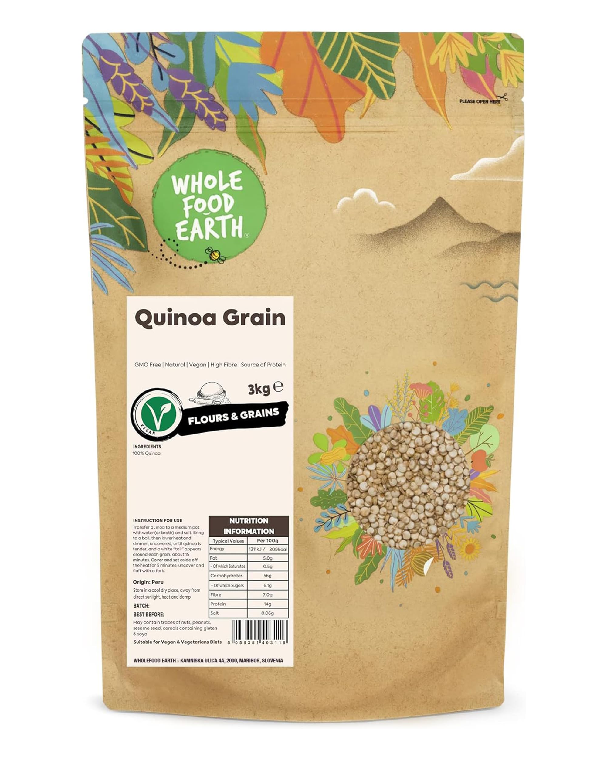 Wholefood Earth Quinoa - Sans OGM - Naturel - V gan - Sans produits laitiers - Sans sucre ajout - 3 kg 3kg