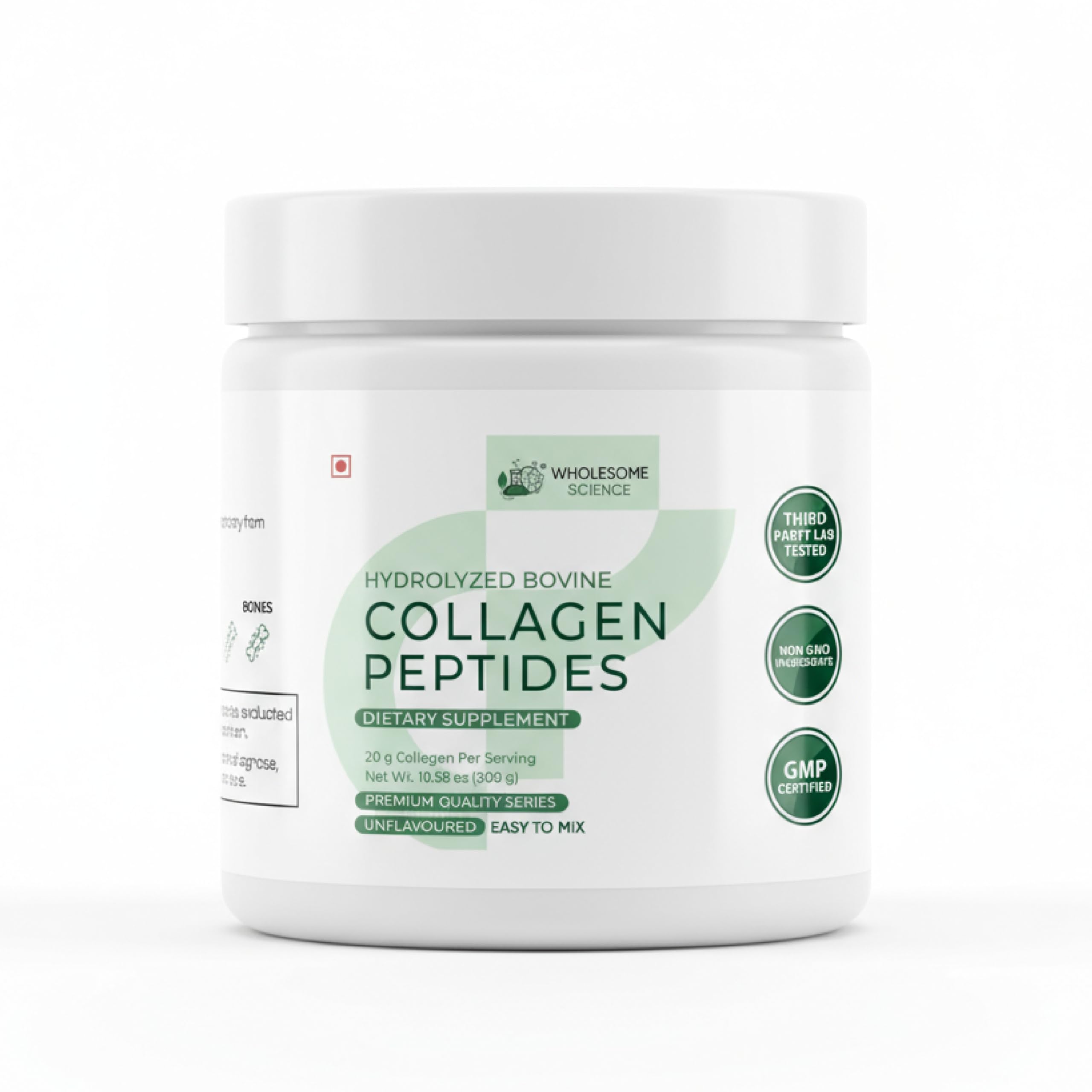 Support healthy skin, hair, nails, and joints with WHOLESOME SCIENCE Hydrolyzed Bovine Collagen Peptides Powder, a premium dietary supplement designed to promote overall wellness, youthful vitality, and natural beauty from within. Each serving delivers 20 g (2 scoops) of high-quality hydrolyzed bovine collagen peptides, formulated to improve skin elasticity, reduce the appearance of fine lines, strengthen hair and nails, and support joint and connective tissue health. This easy-to-mix powder blends seamlessly into water, smoothies, coffee, or your favorite beverages, making it simple to incorporate into your daily wellness routine. Made with non-GMO, clean ingredients, free from soy, gluten, and artificial additives, it provides a safe and natural supplement that fits perfectly into a healthy lifestyle. Every batch is third-party lab tested to ensure purity, potency, and consistency, giving you confidence in the quality and reliability of your supplement. Whether you're looking to enhance beauty, support joint health, or maintain overall vitality, WHOLESOME SCIENCE Hydrolyzed Bovine Collagen Peptides Powder is your plant-based, high-quality solution for daily wellness.THIRD-PARTY LAB TESTED FOR QUALITY: Every batch is independently tested to guarantee purity, potency, and consistency, giving you complete confidence in the quality and reliability of your bovine collagen supplement. Supports healthy skin, hair, nails, joints, and overall well-being as part of a balanced wellness routine. NON-GMO CLEAN INGREDIENTS: Made with high-quality, non-GMO ingredients, free from soy, gluten, artificial additives, and preservatives. This clean and natural formula ensures a safe, allergen-conscious dietary supplement that fits seamlessly into a plant-based or health-conscious lifestyle. EASY-TO-MIX POWDER: Convenient, versatile powder that blends effortlessly into water, smoothies, coffee, or your favorite beverages. Designed for simple incorporation into your daily routine, making it easy to get your full daily collagen intake without compromising taste or convenience. JOINT CONNECTIVE TISSUE HEALTH: Supports joint comfort, flexibility, and connective tissue strength, helping maintain mobility, active movement, and a healthy lifestyle. Ideal for anyone looking to support joint health, cartilage function, and overall musculoskeletal wellness. DAILY COLLAGEN SUPPORT: Each serving provides 20 g (2 scoops) of premium hydrolyzed bovine collagen peptides, formulated to support healthy skin elasticity, promote glowing, youthful-looking skin, strengthen hair and nails, and enhance overall vitality as part of your daily wellness routine.