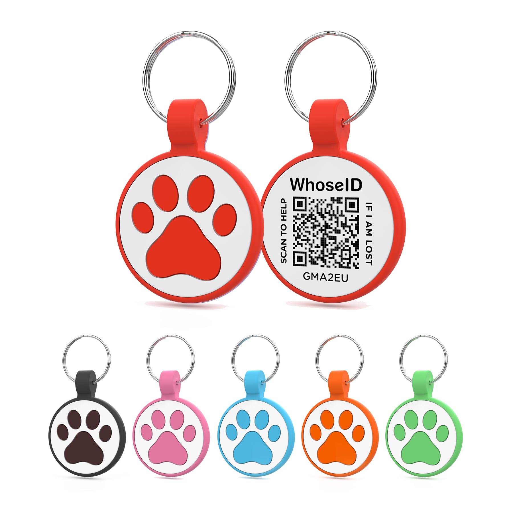 WhoseID QR-Code Katzenmarke, modifizierbares Haustier-Online-Profil, mehrere Notfallkontakte, scannbarer QR-Code, E-Mail-Benachrichtigung für sofortige Standorte, Halsbandzubehör (kleine Rassen - 2,5 cm, rot)