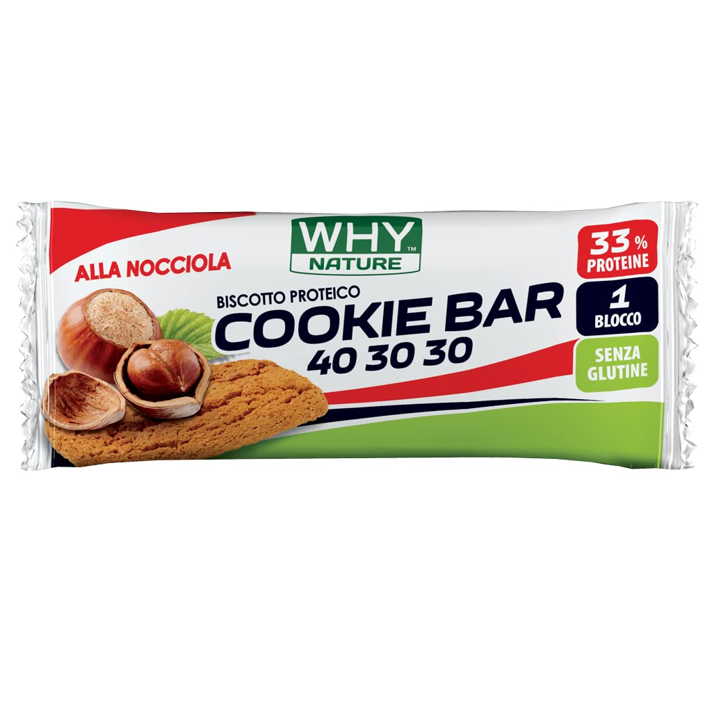 WHY NATURE WHY NATURE COOKIE BAR 40 30 30 - Protein bar - Gluten free protein biscuit - Protein snack - Hazelnut taste - 21g